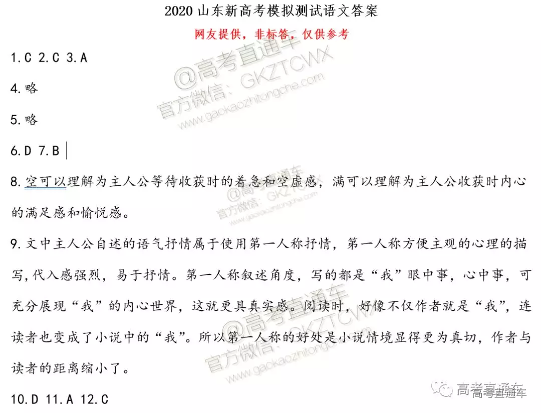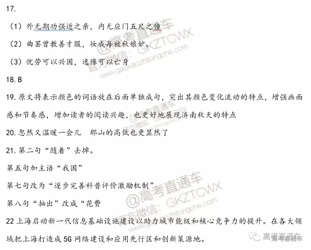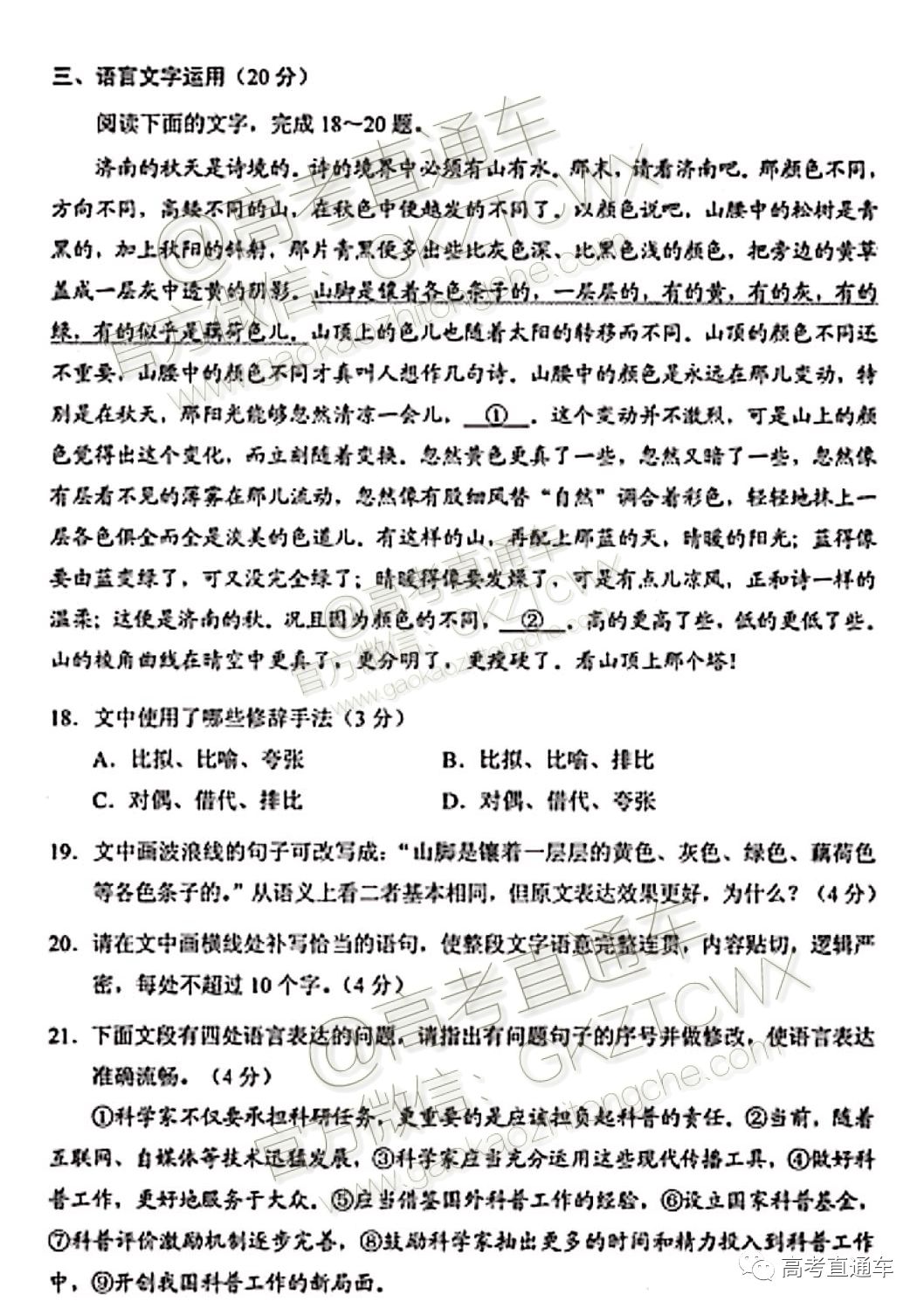 1)第18题,与2019年全国卷考查词语(或标点)、病句、语句复位的三个四选一的选择题有所不同,本题考查修辞手法的判定,这已经是多年未曾考查的题型。