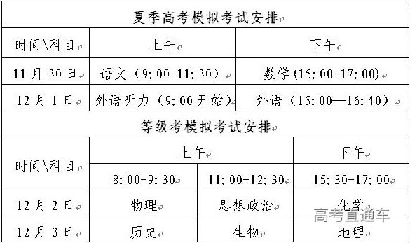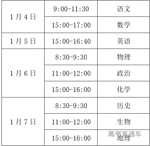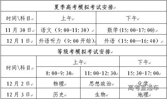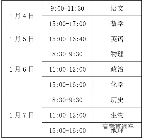 时间初定为2020年的1月4日~1月7日,模拟考试地点为考生学籍所在学校,考试时间如下: