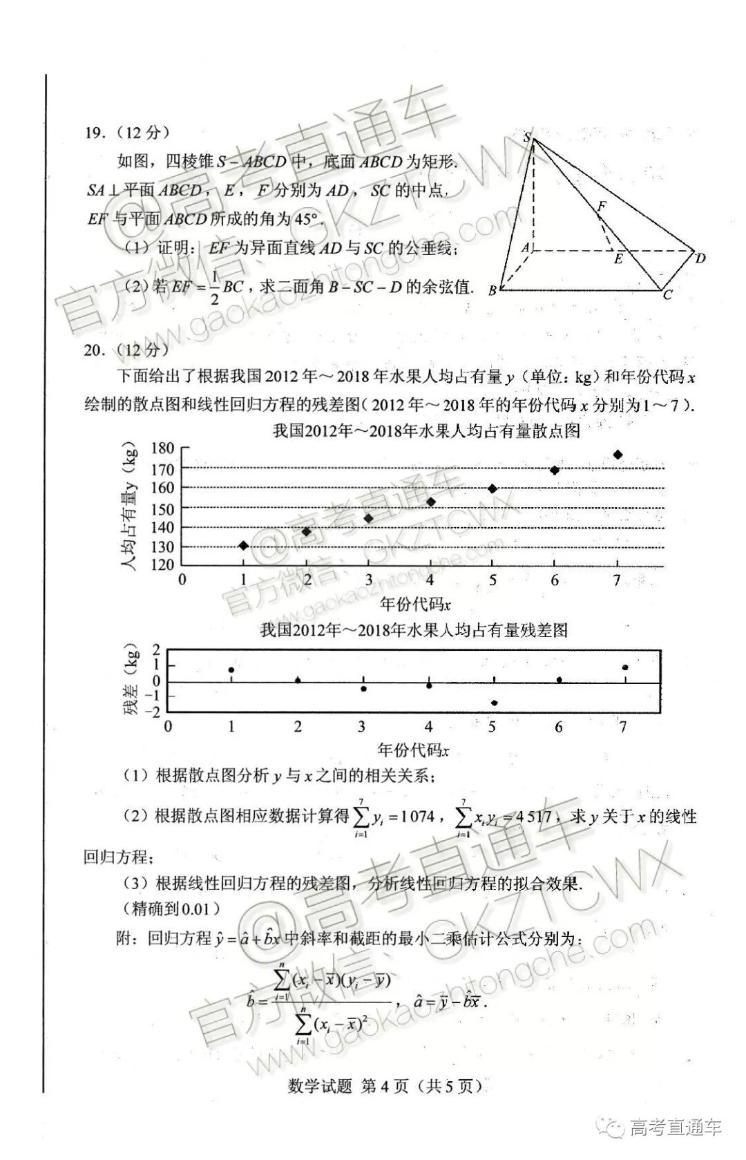 20题以水果人均占有量为背景,考查考生对数学建模素养的应用;