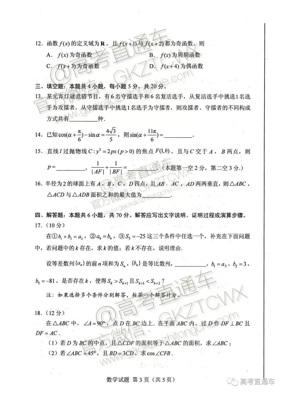 1)第15题为4选1选择题,3分,与2019高考一致。