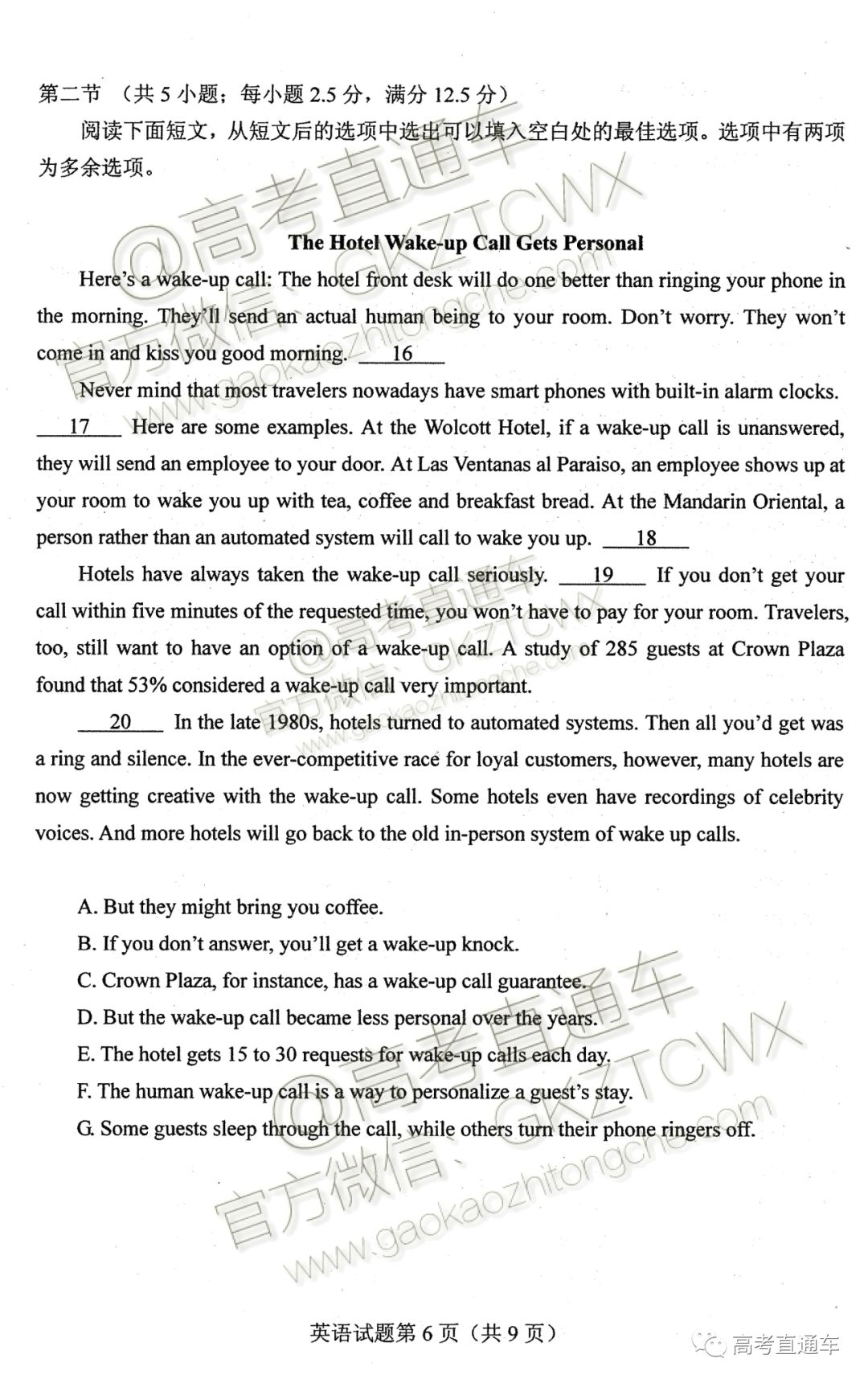 3)第20题,考查补写句子,共补写两个句子,每个句子2分。