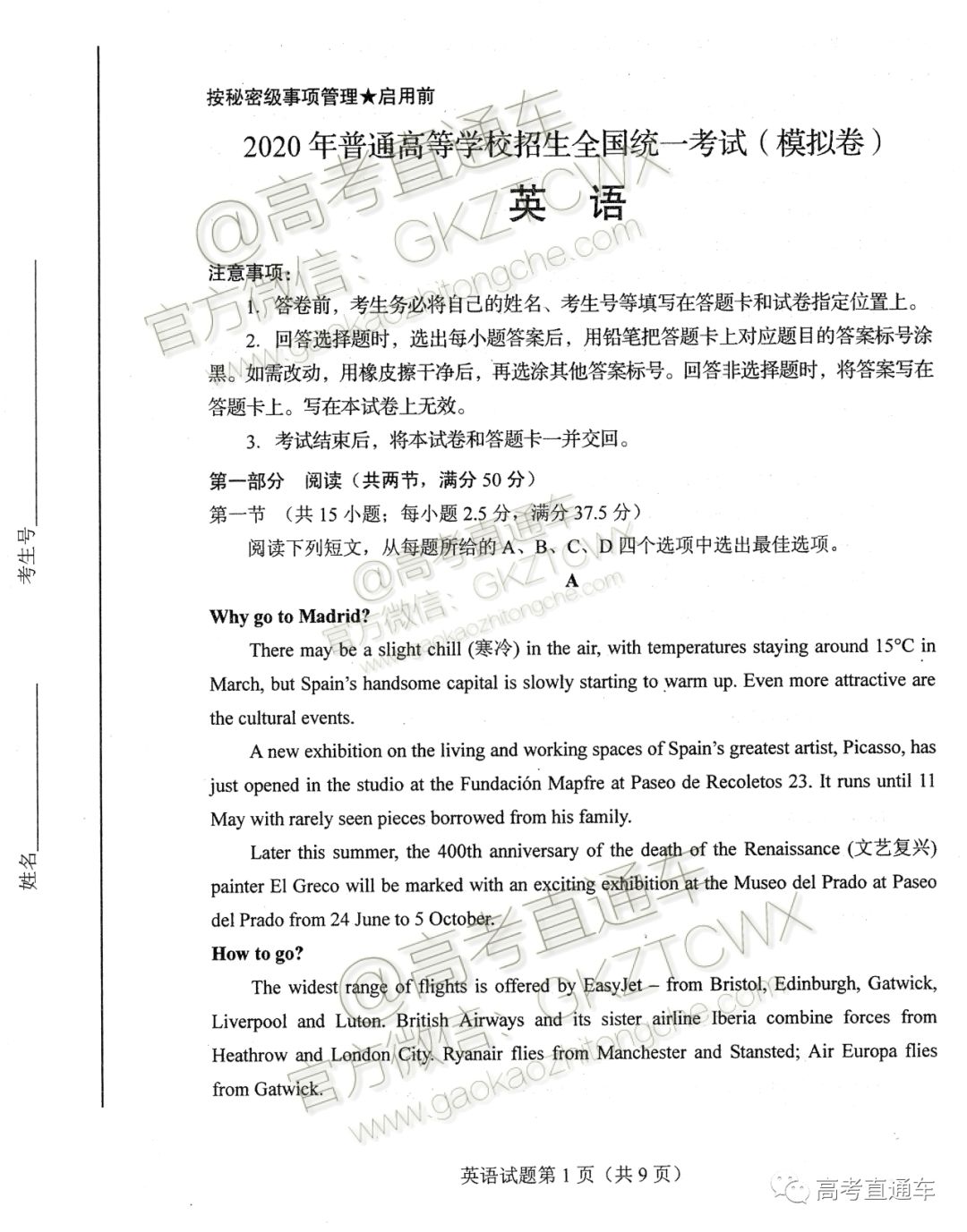 届时,高考直通车(ID:gkztcwx)将会在考后实时直播试题答案,大家敬请关注!