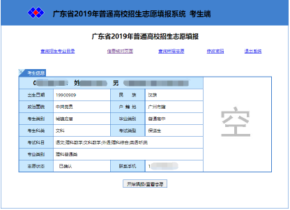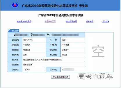 上部的“考生信息”栏目列出考生志愿填报的相关信息,请注意“志愿状态” 信息。