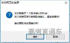 如果考生还剩最后一次取消确认的机会,系统会提示: