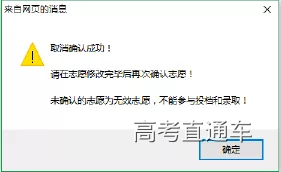 点击“取消确认”按钮,考生可以取消当前确认志愿状态,以便再次修改志愿,注意每个考生最多只有2次取消确认的机会。
