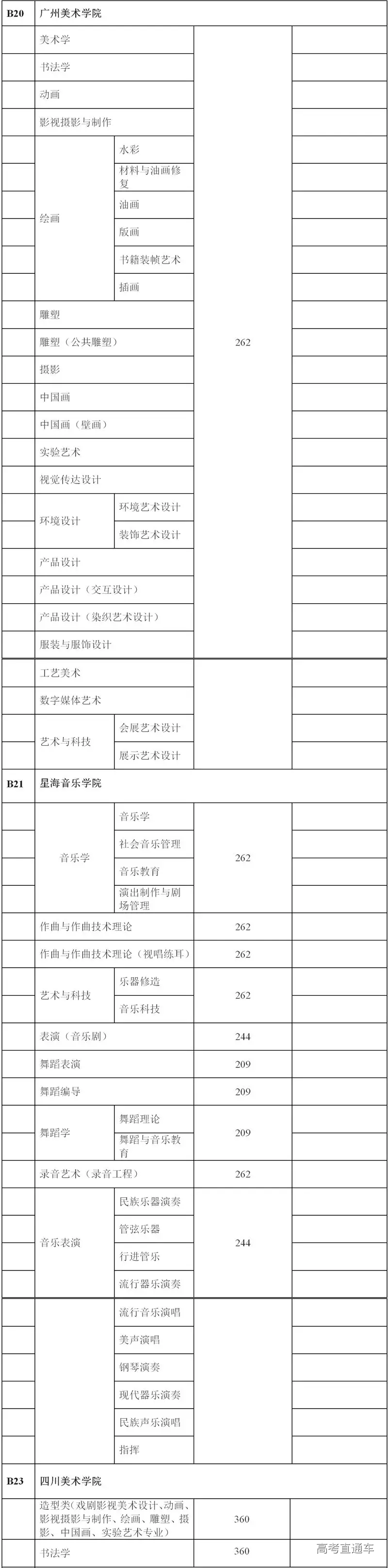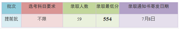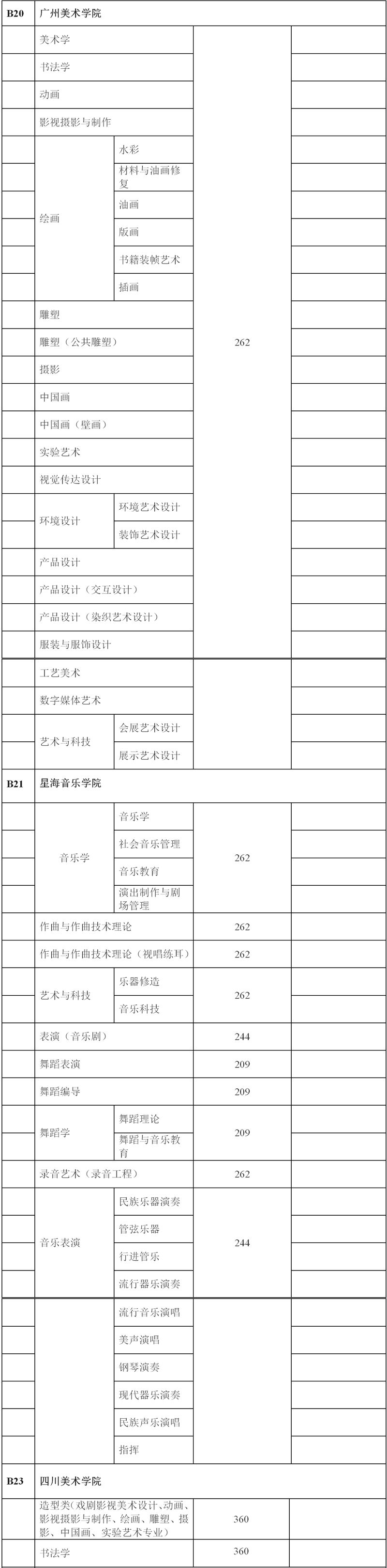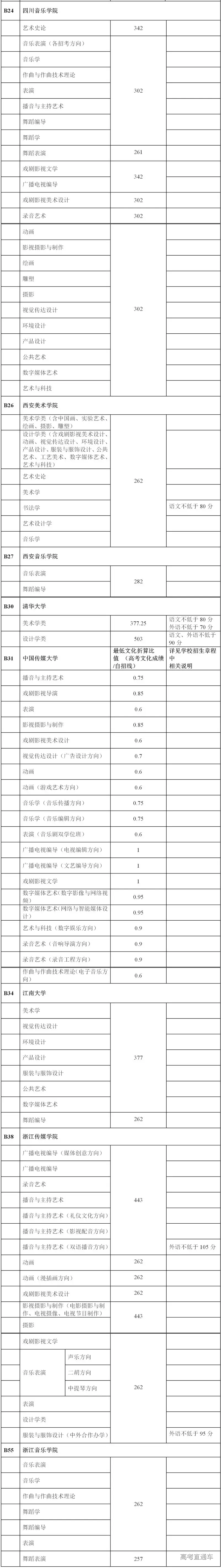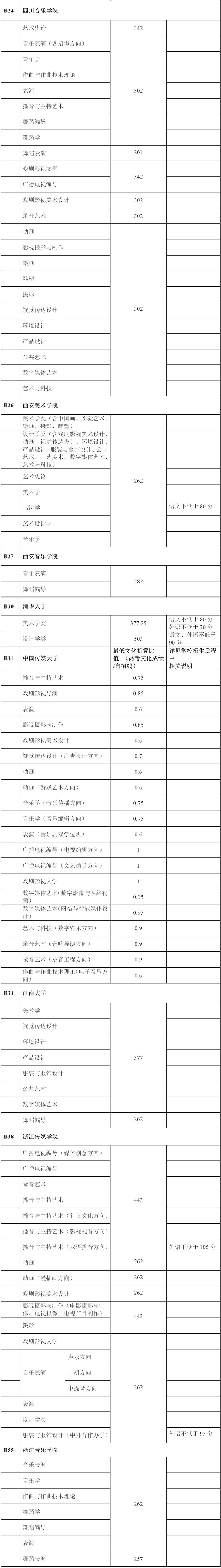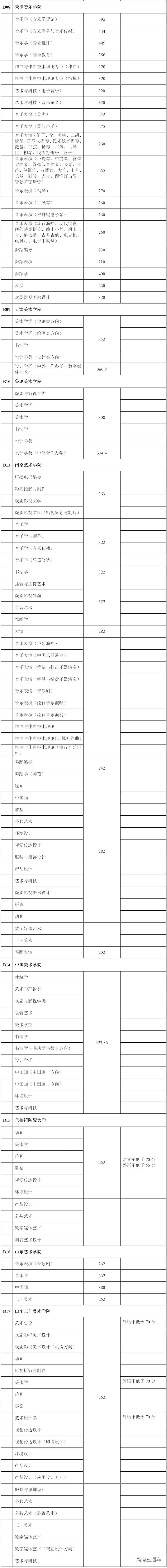 注:达到录取最低文化控制分数线而未被录取的考生,可能是因为专业排名靠后、单科成绩受限、男女生比例、合成分低等原因退档。上表所列各招生院校录取最低文化控制分数线均由各校自行划定并提供,具体划定方法及退档原因,考生可查阅院校招生网站或咨询院校招生办公室。