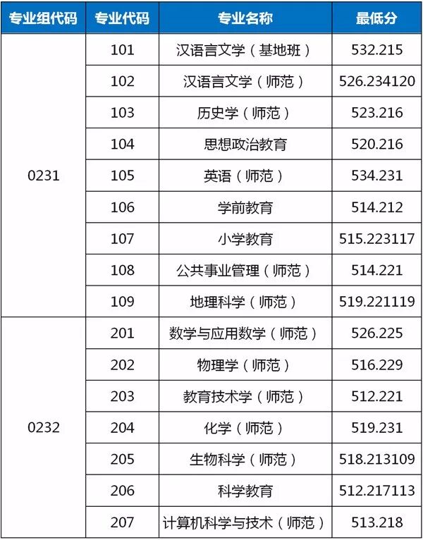 科目组0231(999),投档线514分。学前教育调剂到515.212分。