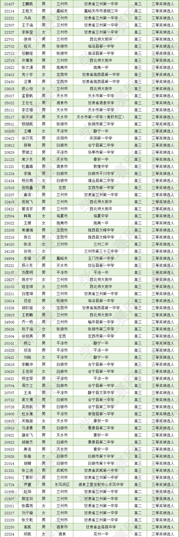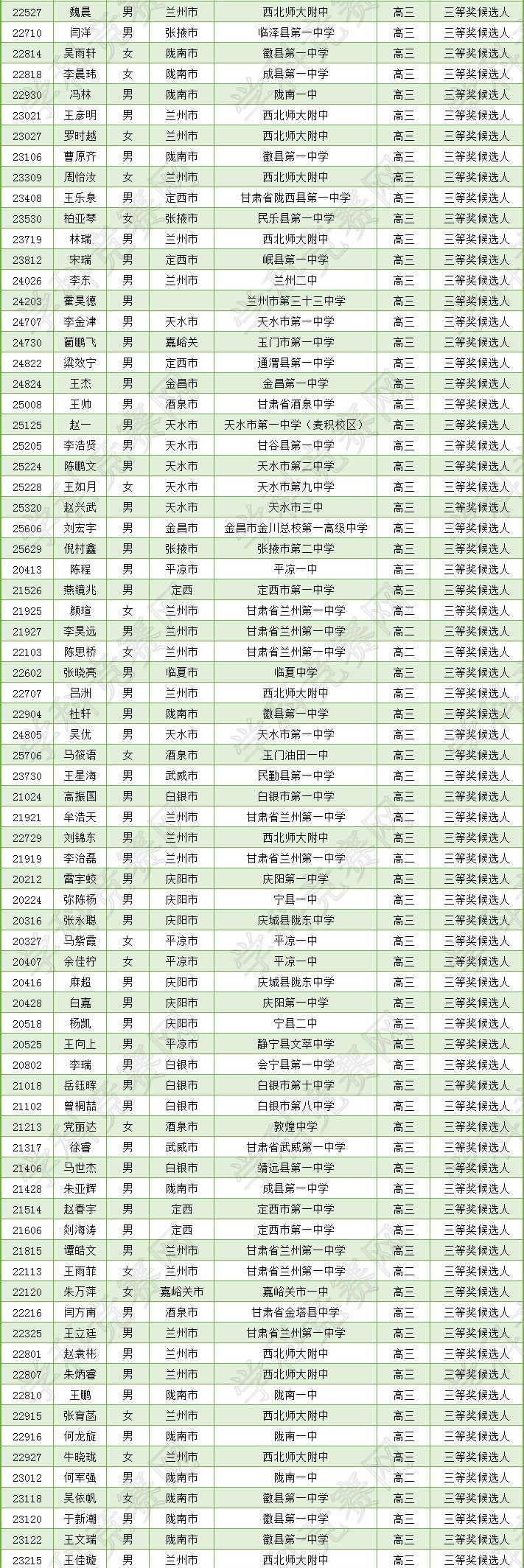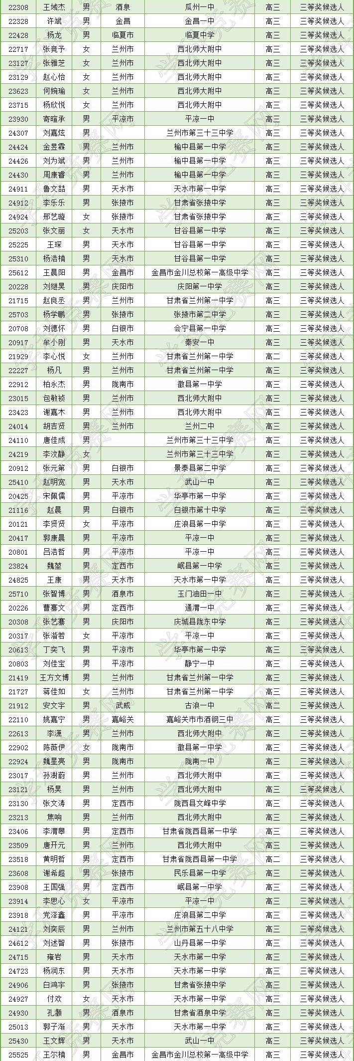甘肃发布了2019数学高联省一、省二、省三全部获选人获奖名单,其中“省一”68人、“省二”239人、“省三”444人。