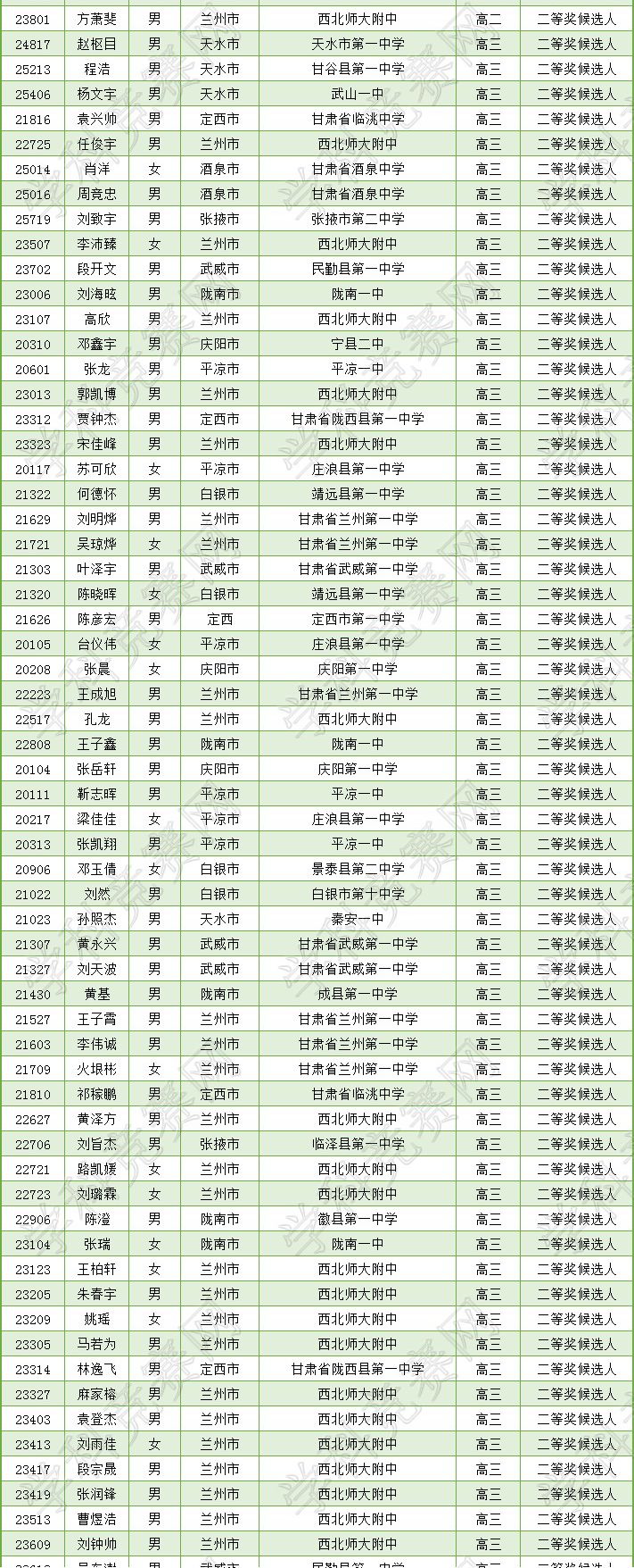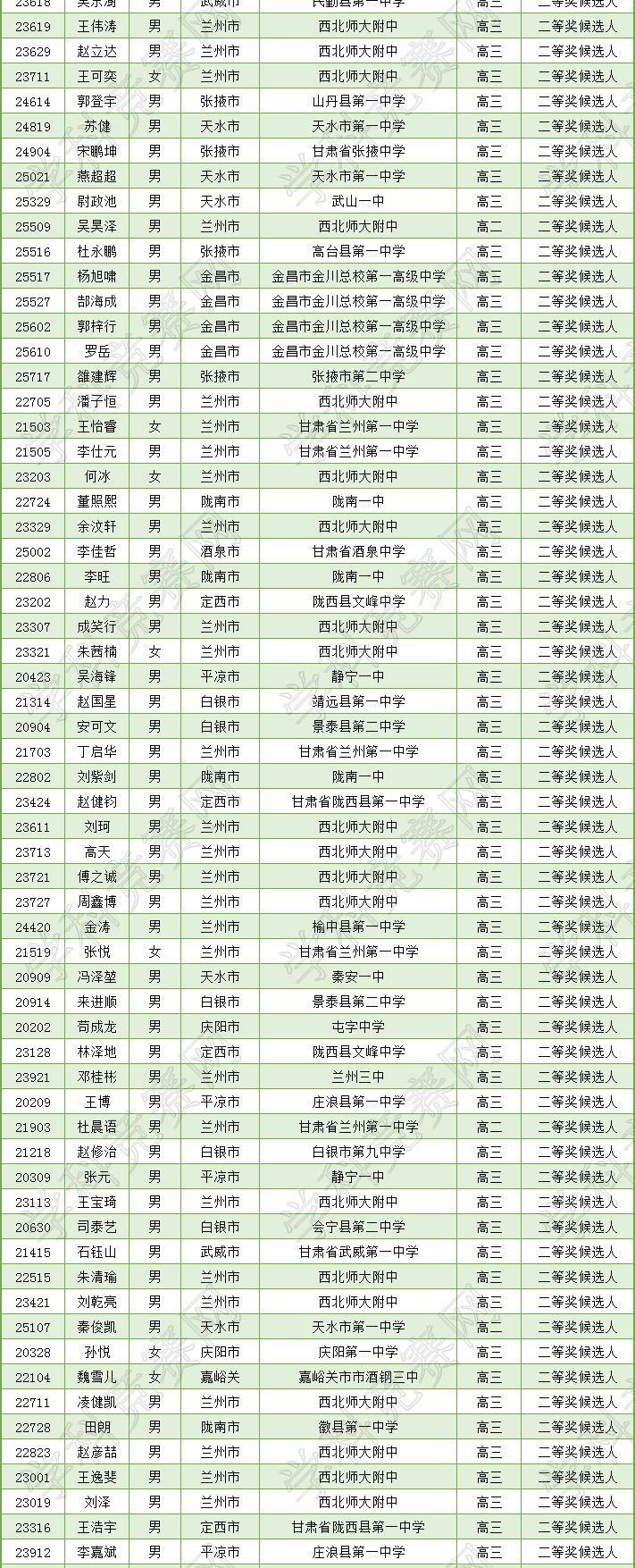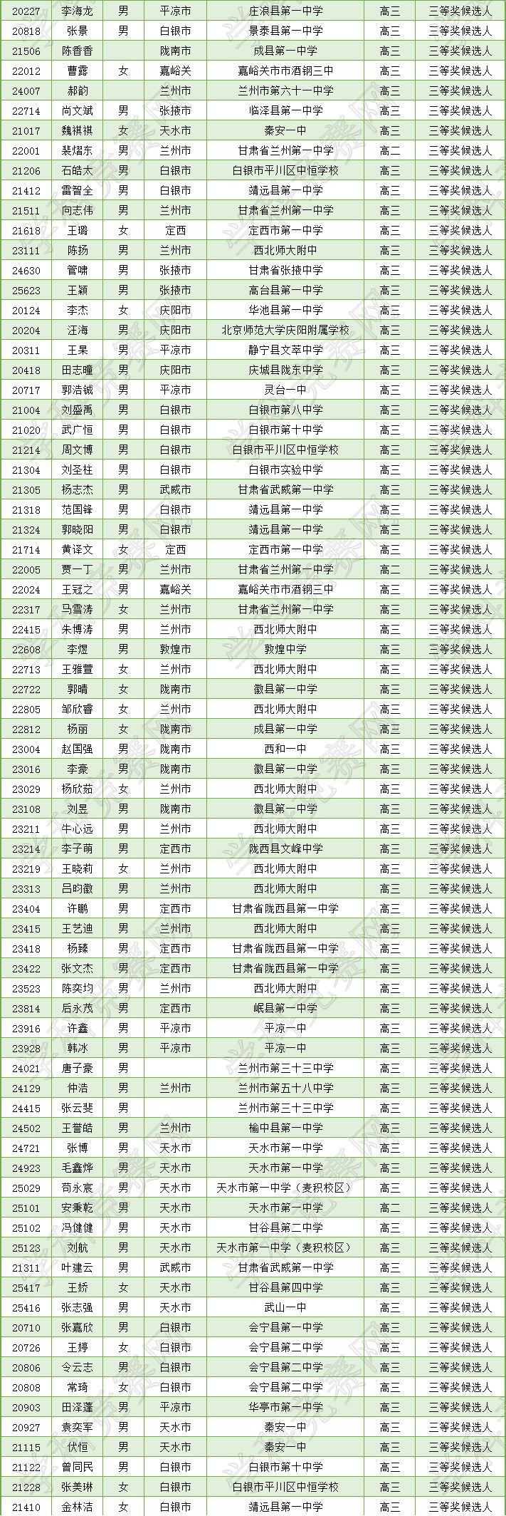 甘肃发布了2019数学高联省一、省二、省三全部获选人获奖名单,其中“省一”68人、“省二”239人、“省三”444人。