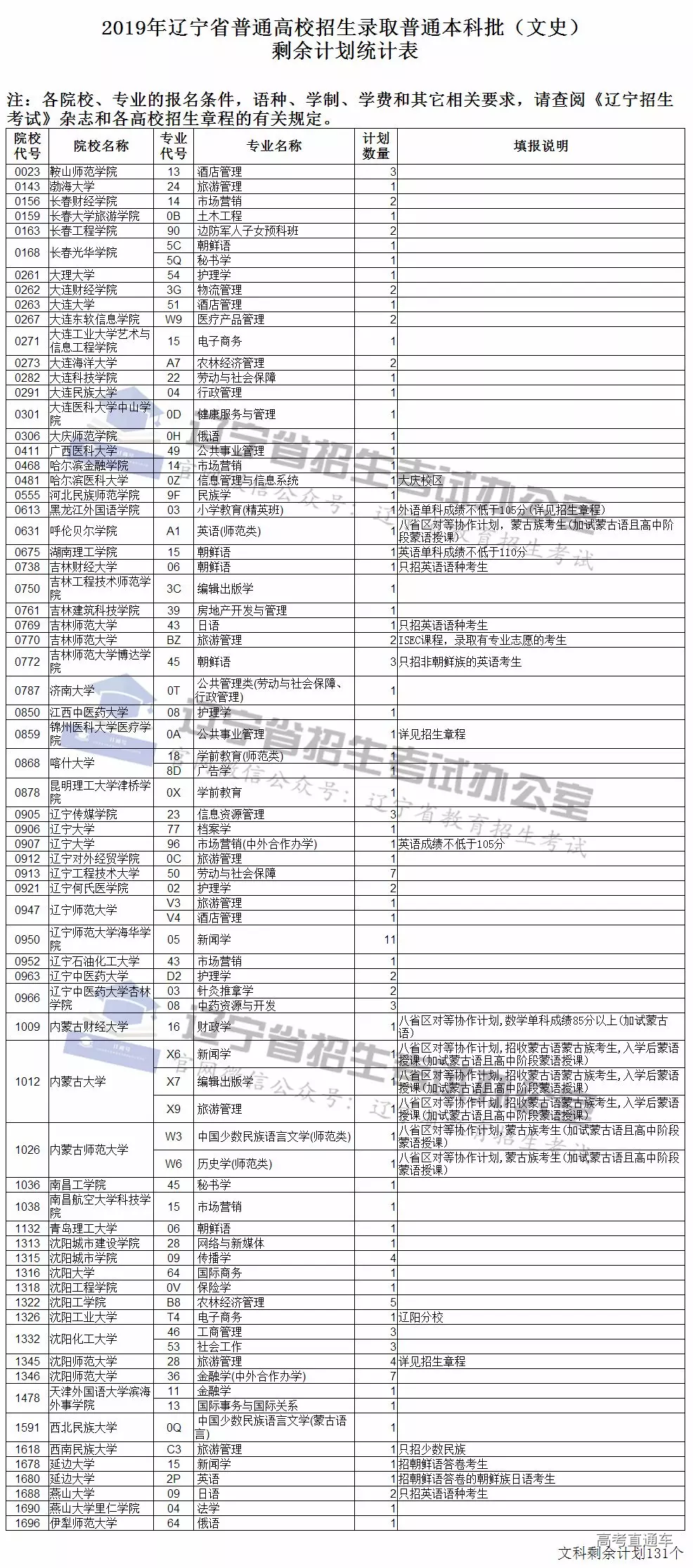 2019年辽宁省普通高校招生录取普通本科批安排两次“征集志愿”补充录取。现就公布普通本科批剩余计划和填报第一次“征集志愿”有关问题说明如下: