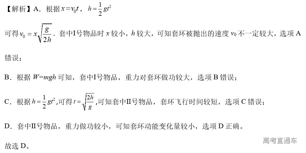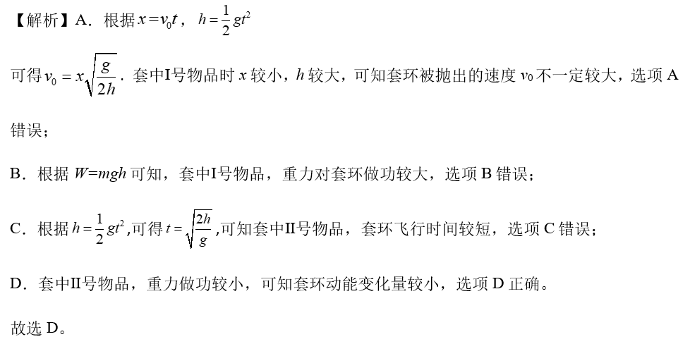 4. 如图所示,“套圈”活动中,某同学将相同套环分两次从同一位置水平抛出,分别套中Ⅰ、Ⅱ号物品.若套环可近似视为质点,不计空气阻力,则( )