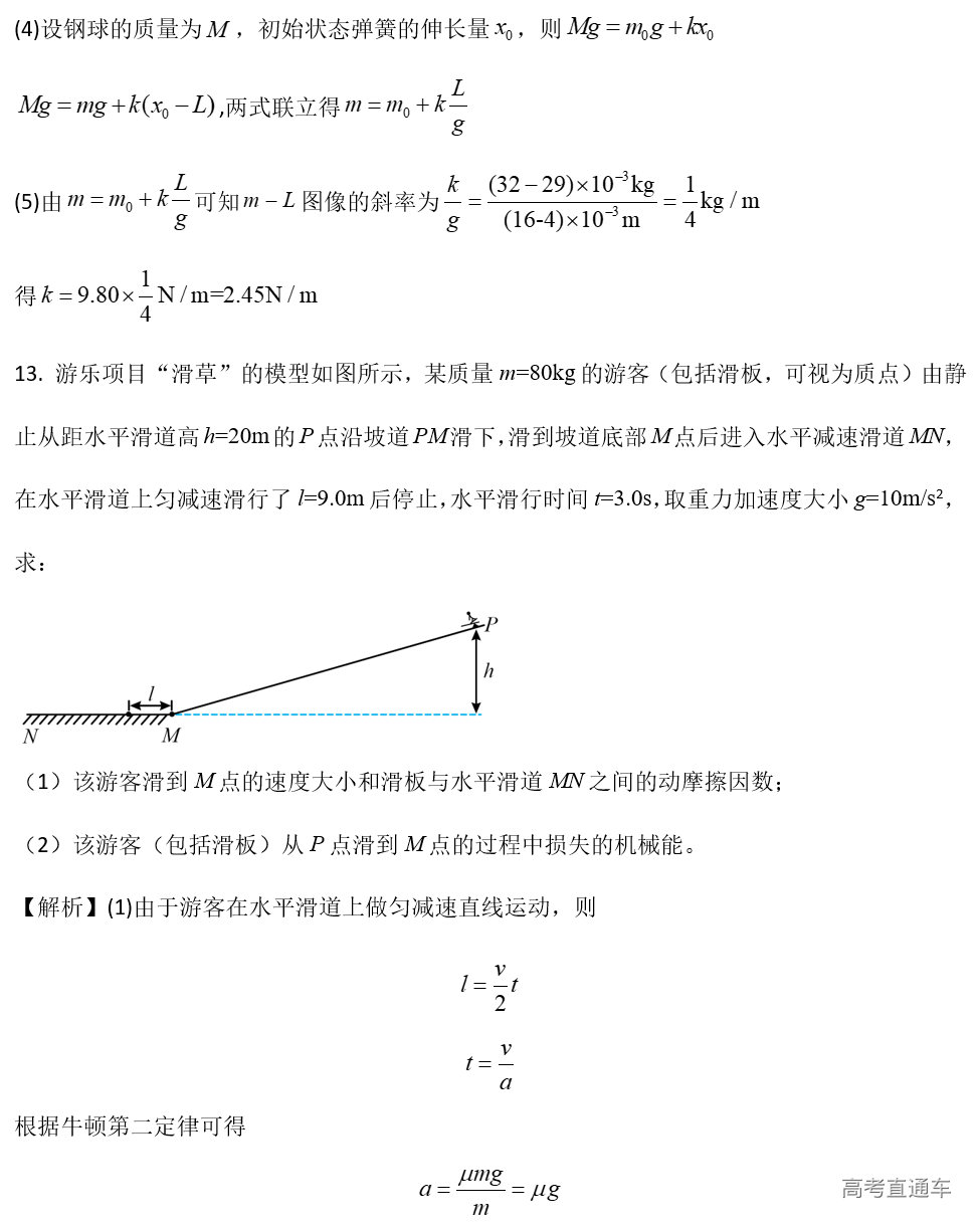 (4)试卷的结构由选择题,实验题,解答题构成。试题增加了解答题的分数占比,强调“多想一点,少算一点”的理念,定性或半定量试题居多,从重考查知识回忆和运算向重考查思维过程转变。强化物理情境与物理知识的有机融合,对于物理概念、物理规律结合实际情境的考查进一步增强。加强对模型建构能力、逻辑推理能力的考查,体现出选拔性。解答题第15题作为压轴题,难度较大,具有一定的选拔功能。明确以课标为准绳的根本认识,考试的范畴不脱离课标。难度结构合理,大部分为常规题目。中低难度的题目平和清新,重点突出;难度的题目不偏不怪,中规中矩,体现了良好的区分性。命题整体难度降低,但综合题的思维难度有进一步提升的可能。试卷灵活改变试题形式,“反套路、反刷题,”,积极引导物理教学要重视培养学生良好的物理学科思维品质和关键能力。不能确定实验只考“力+电”,也可能考查光和热等实验。物理压轴题多以电磁学模块或力学部分的多物体或多过程的碰撞问题进行考查。