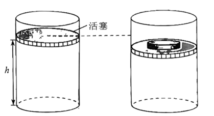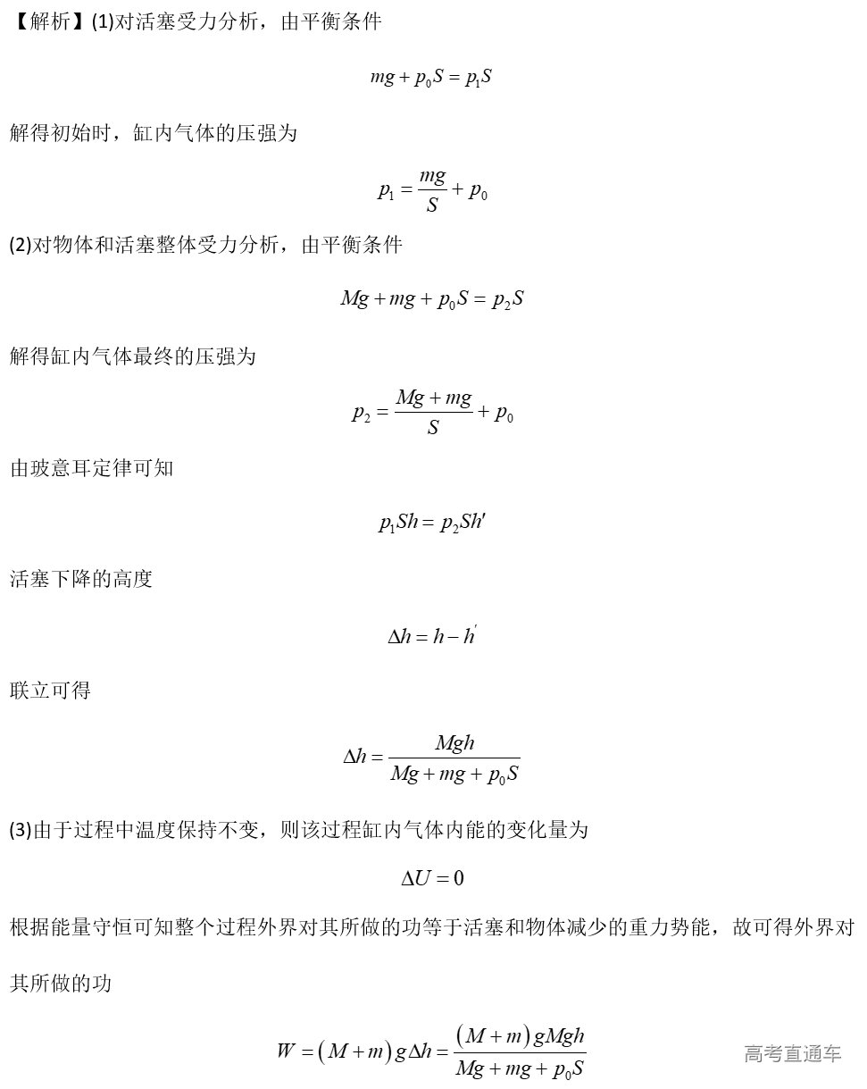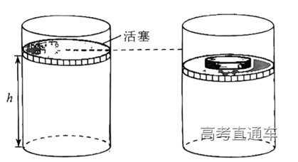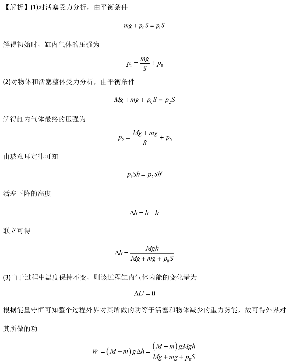 14. 如图所示,一导热性能良好的圆柱形金属汽缸竖直放置。用活塞封闭一定量的气体(可视为理想气体)、活塞可无摩擦上下移动且汽缸不漏气。初始时活塞静止,其到汽缸底部距离为h。环境温度保持不变,将一质量为M的物体轻放到活塞上,经过足够长的时间,活塞再次静止。已知活塞质量为m、横截面积为S,大气压强为,重力加速度大小为g,忽略活塞厚度。求: