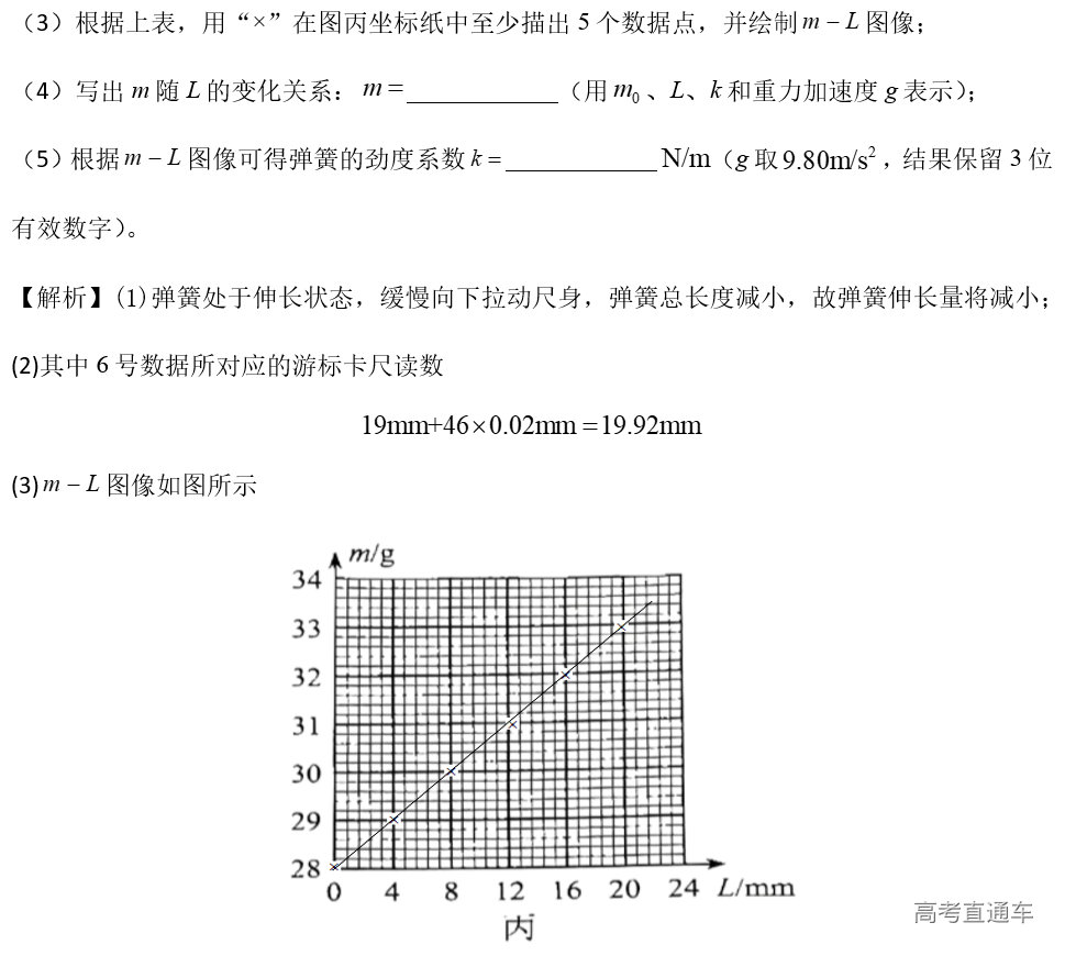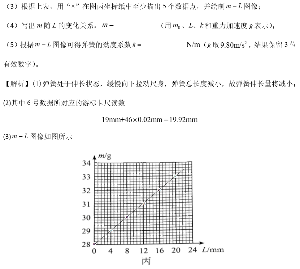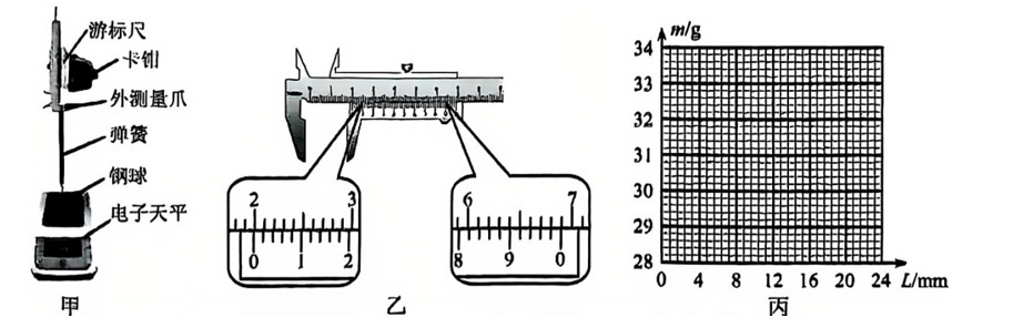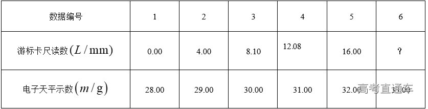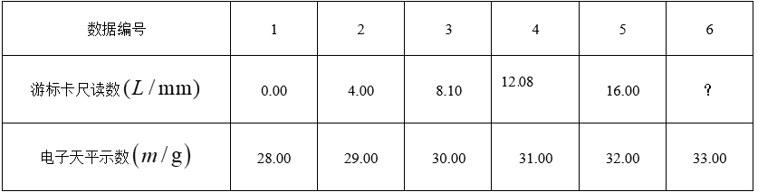 ⑤缓慢向下拉动尺身,改变电子天平的示数m,m每增加,拧紧游标尺紧固螺钉,读出对应的游标卡尺读数L,在表格中记录实验数据。