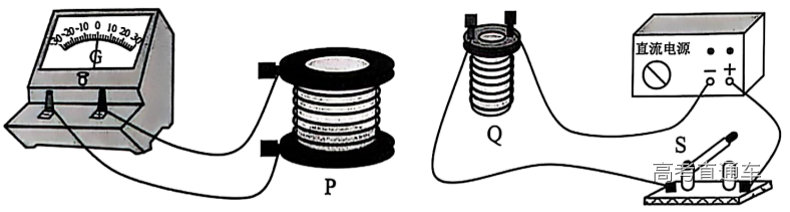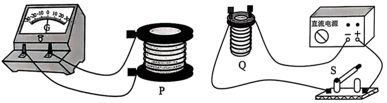 8. 法拉第在日记中记录了其发现电磁感应现象的过程,某同学用现有器材重现了其中一个实验。如图所示,线圈P两端连接到灵敏电流计上,线圈Q通过开关S连接到直流电源上.将线圈Q放在线圈P的里面后,则( )