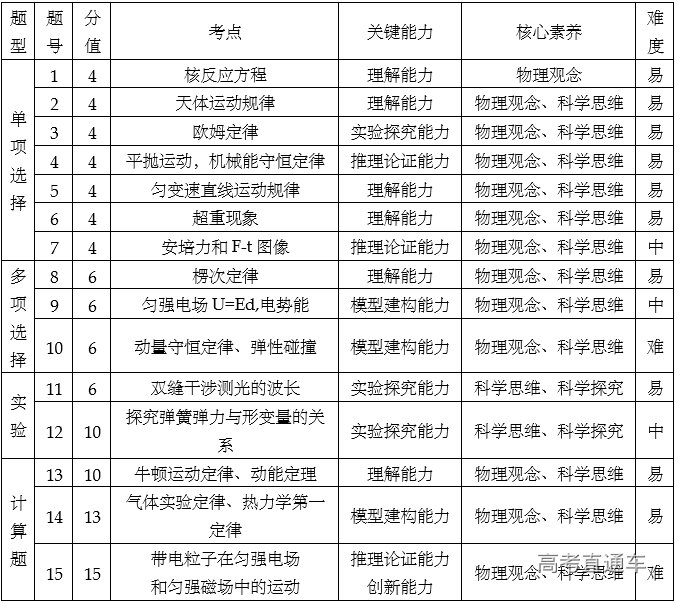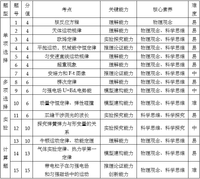 物理命题是“一核四层四翼”的高考评价体系的生动体现,试题严格遵循《普通高中物理课程标准(2017年版2020年修订)》,聚焦学科主干内容,突出基础性、综合性、应用性和创新性,加强对考生逻辑推理、信息加工、模型建构等关键能力的考查,引导学生能力培养和综合素质的提升,助推学科核心素养目标达成。