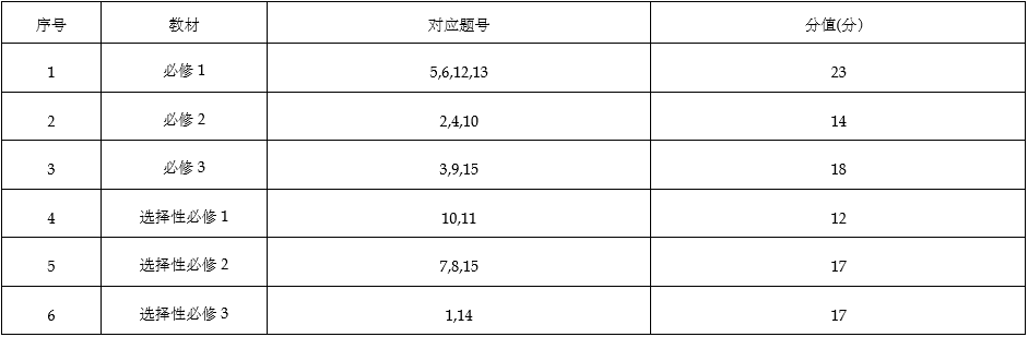 云南省试卷第9题、第15题考查物质观;第2、4、6、7、10、12题考查运动和相互作用观;第9、13、14题考查能量观。