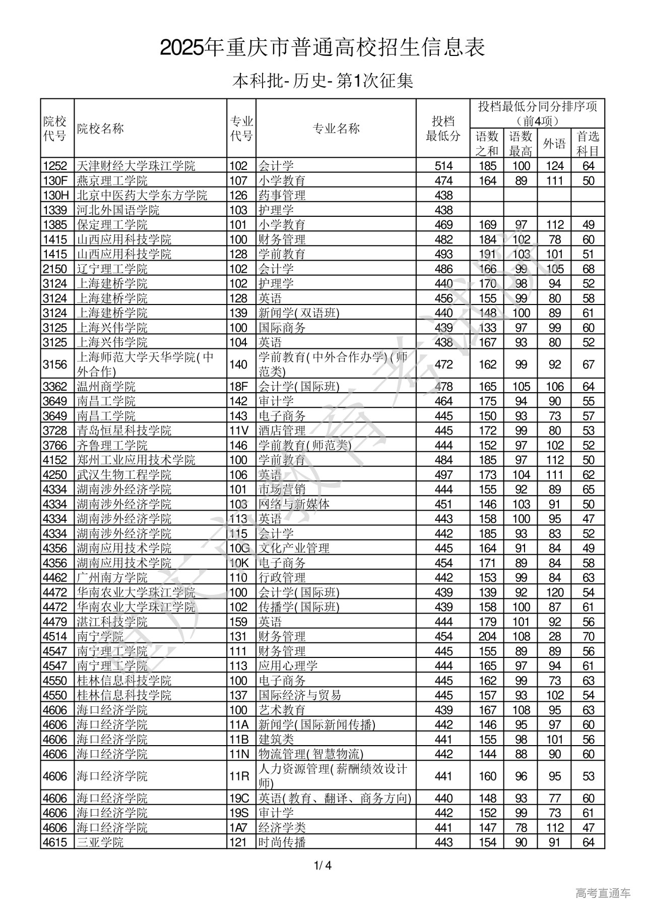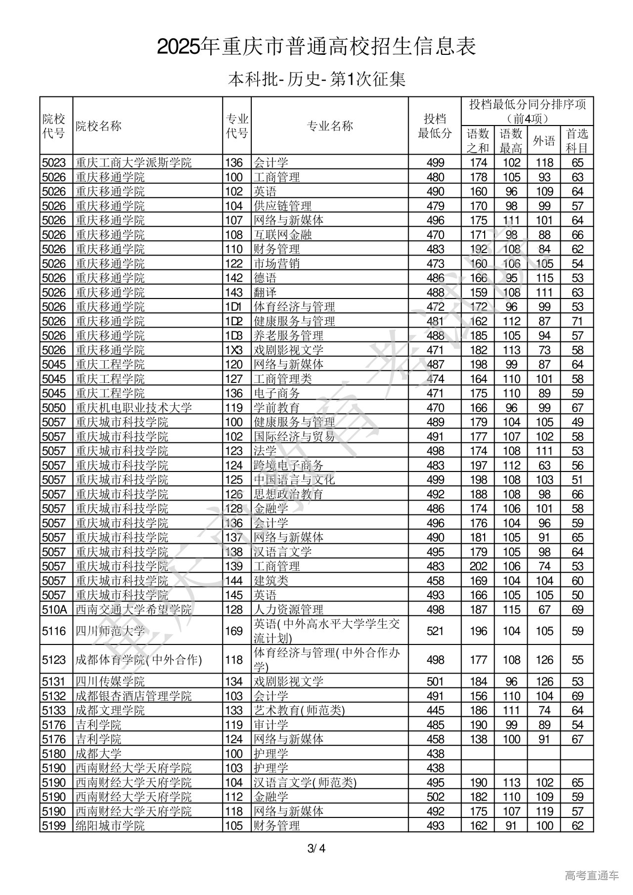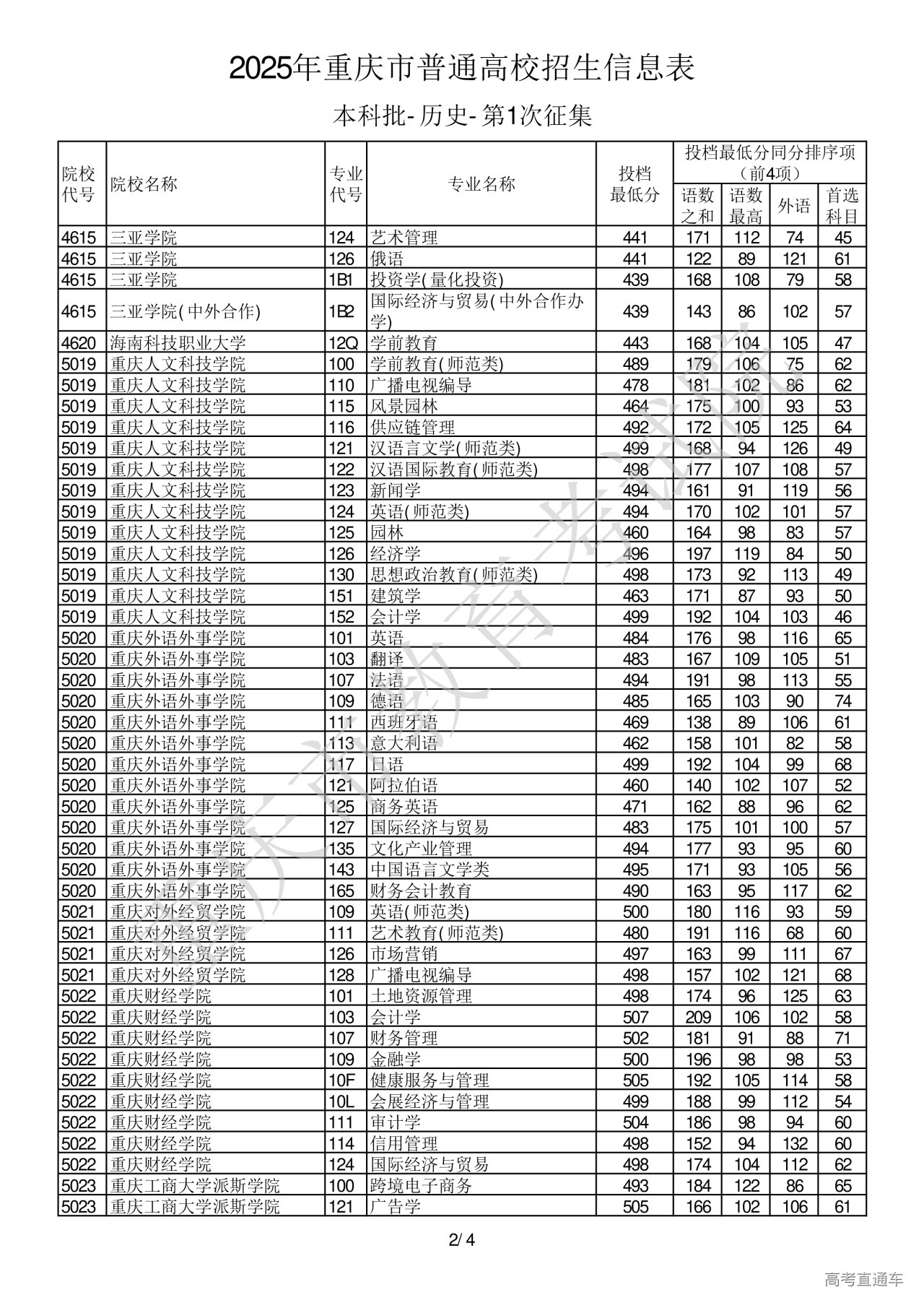 2025年重庆市普通高校招生信息表本科批-历史-第1次征集.pdf