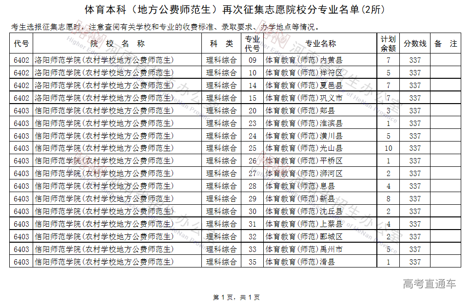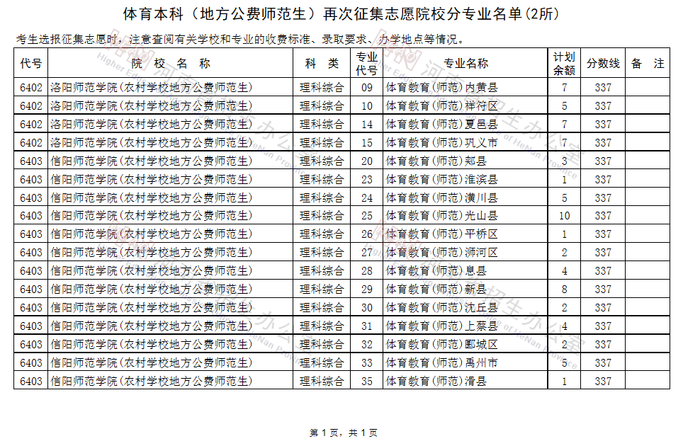 (二)体育本科(地方公费师范生)再次征集志愿院校分专业名单(2所)