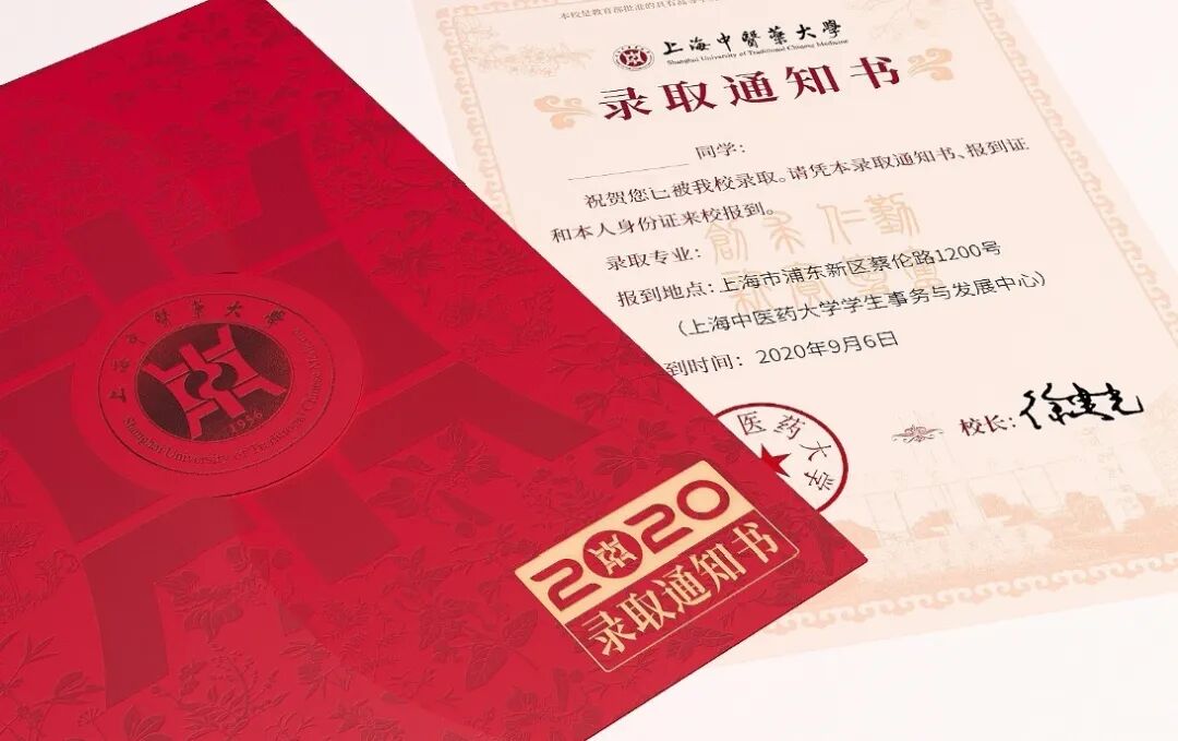 上海中医药大学2020高考录取通知书出炉