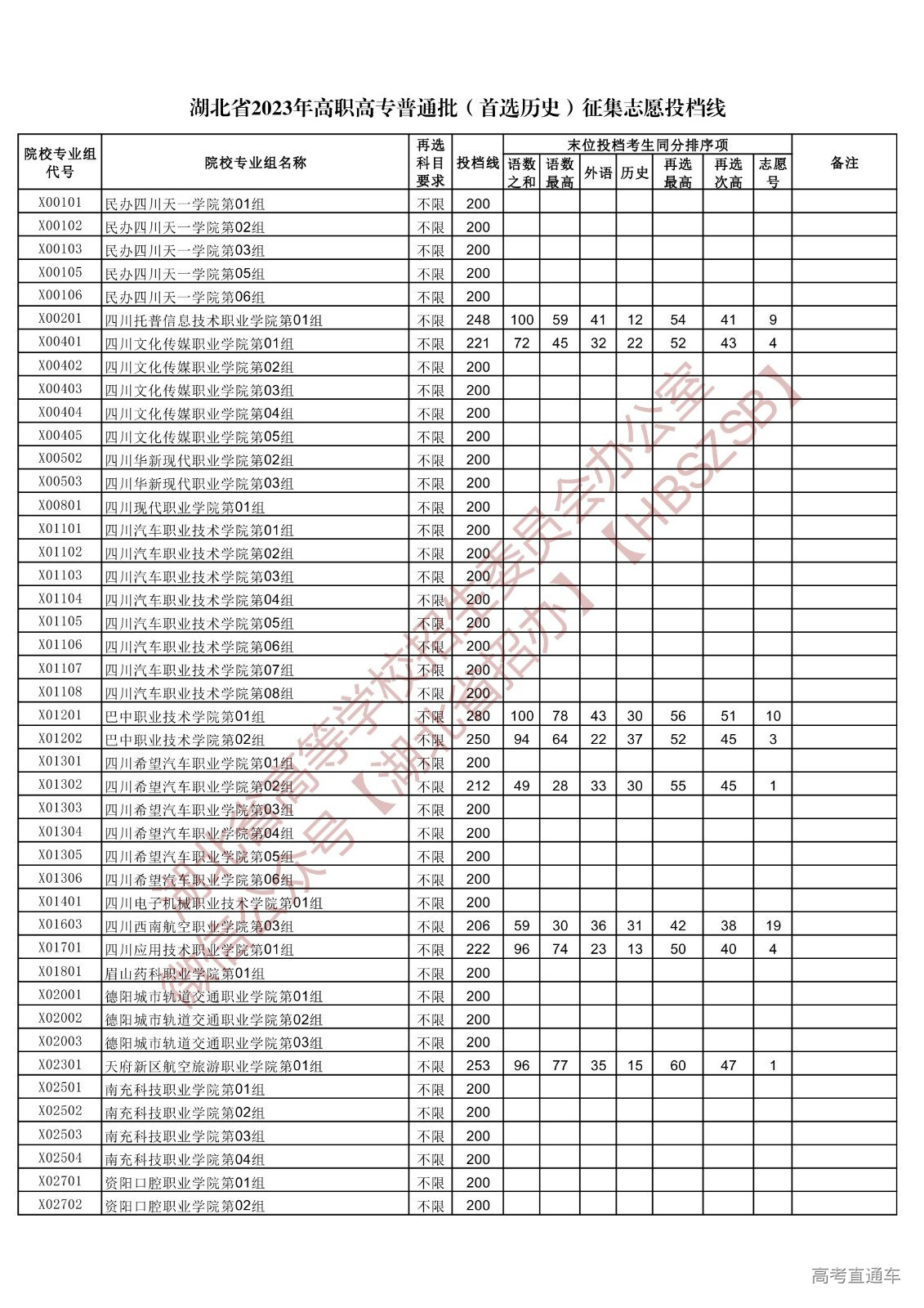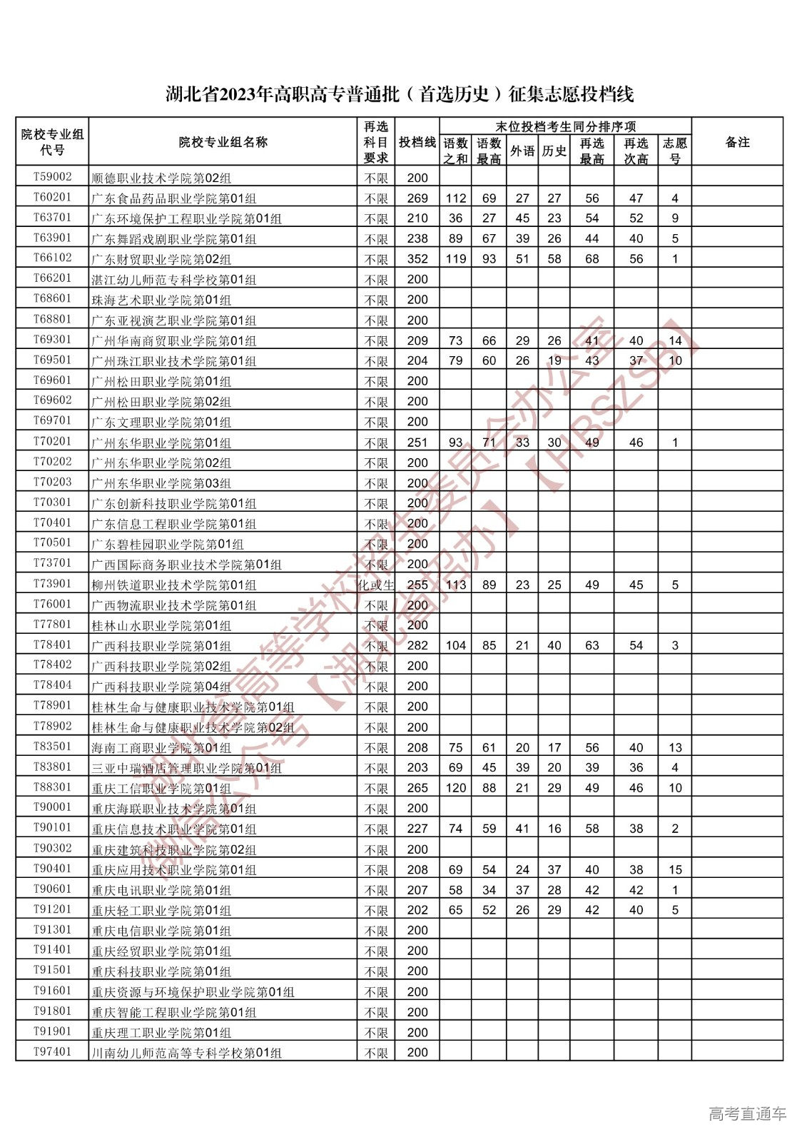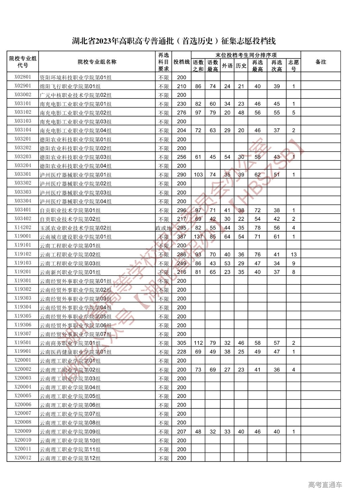湖北2023年高职高专普通批(首选历史)征集志愿投档线