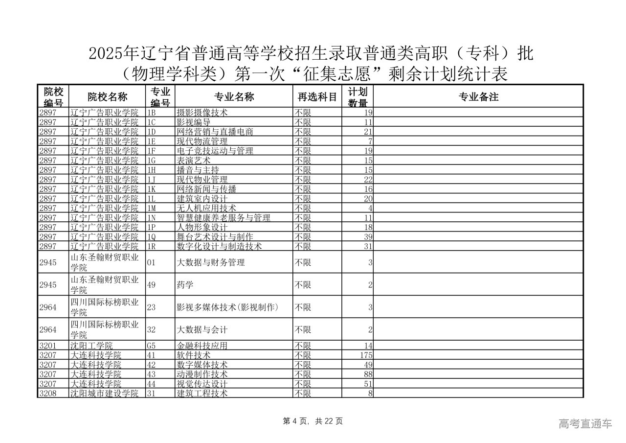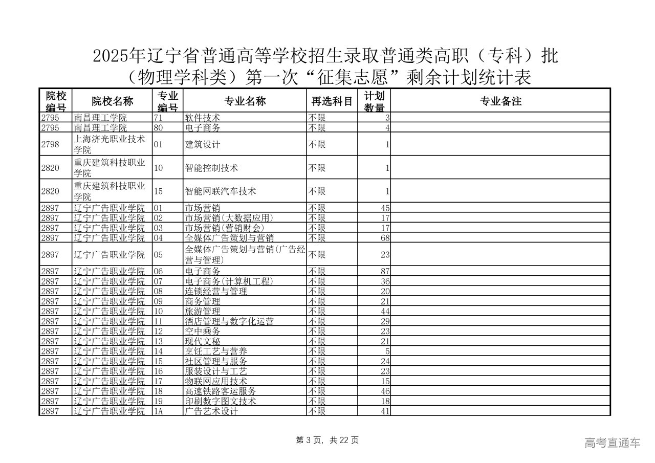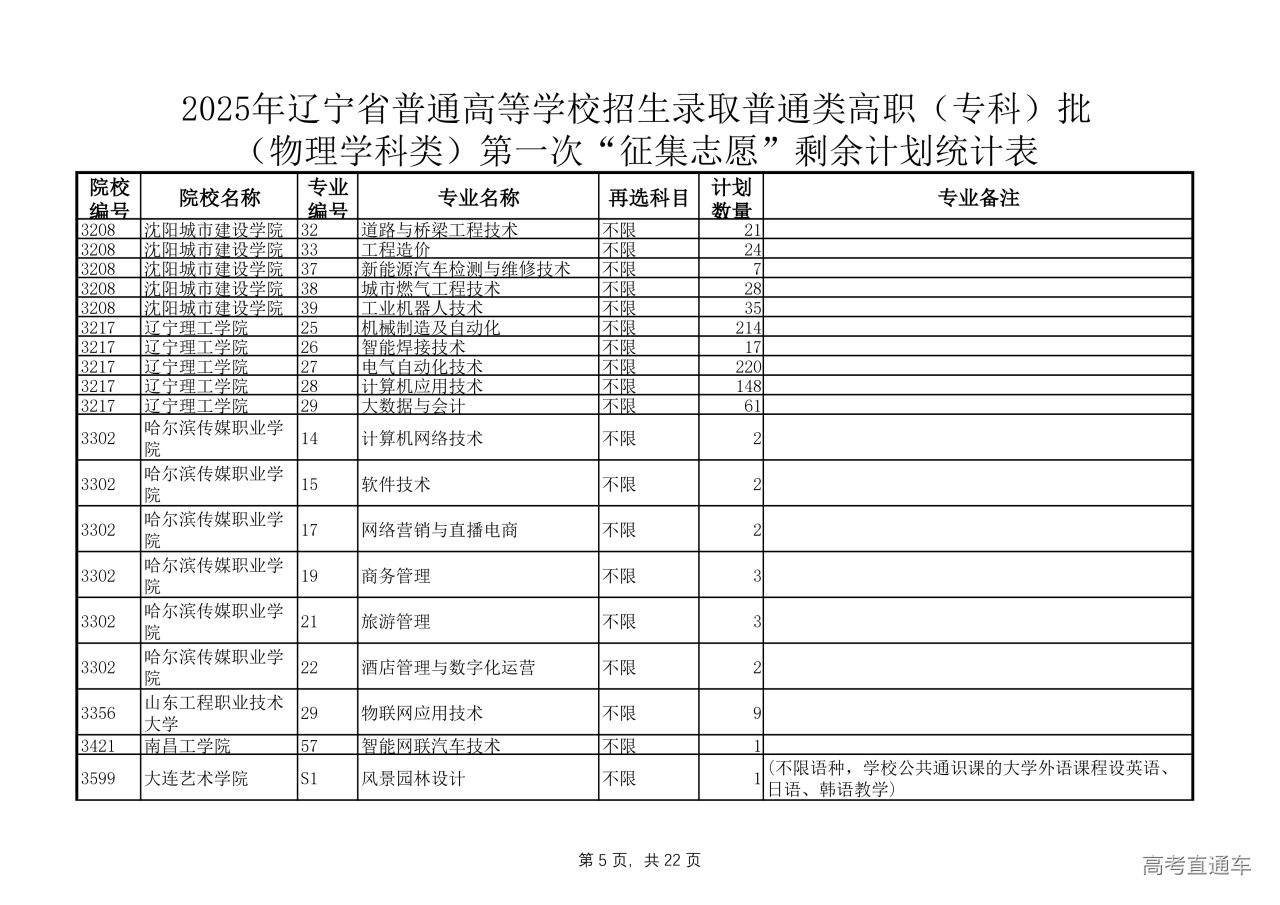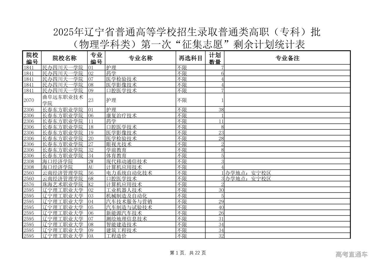 2025年辽宁省普通高等学校招生录取普通类高职(专科)批安排两次“征集志愿”补充录取。现就公布普通类高职(专科)批第一次“征集志愿”剩余计划和填报第二次“征集志愿”有关事项说明如下: