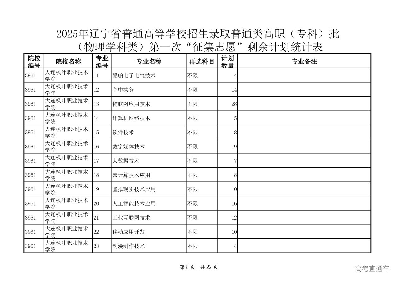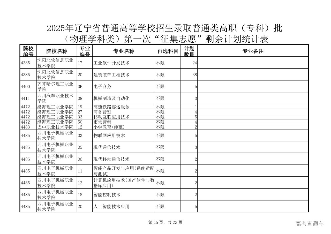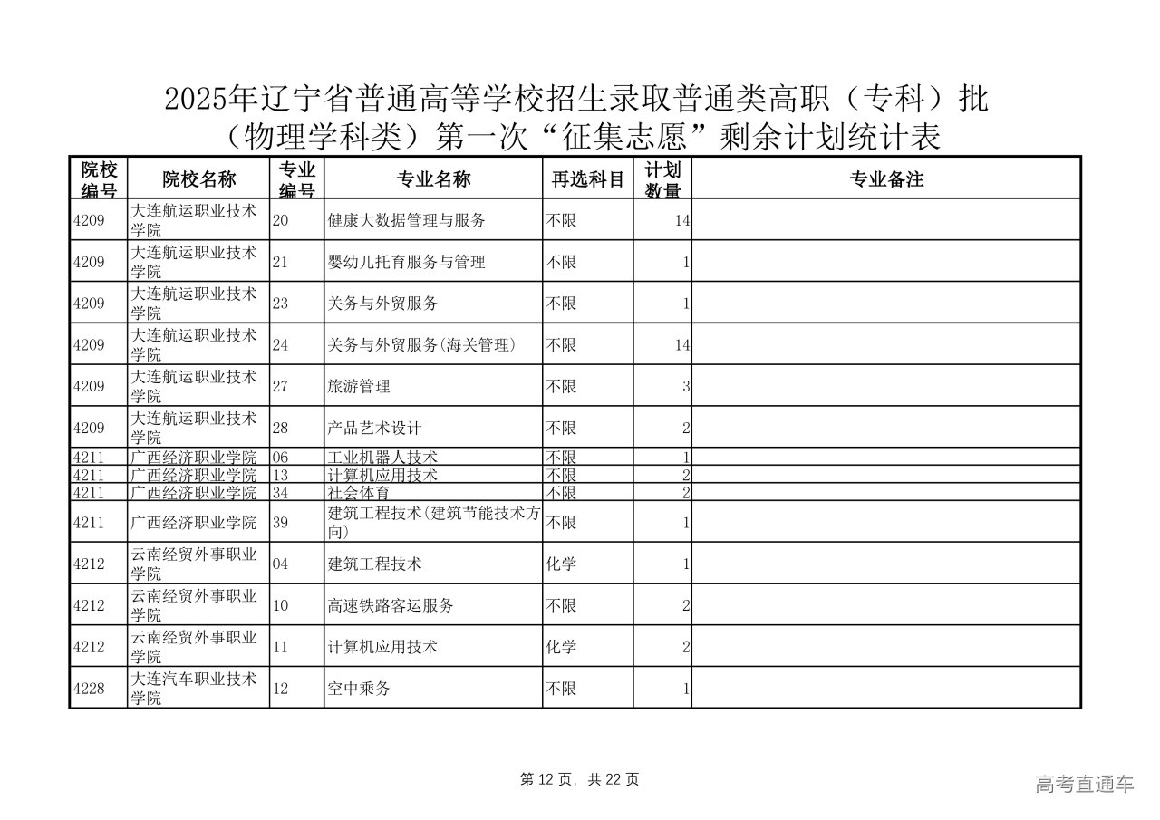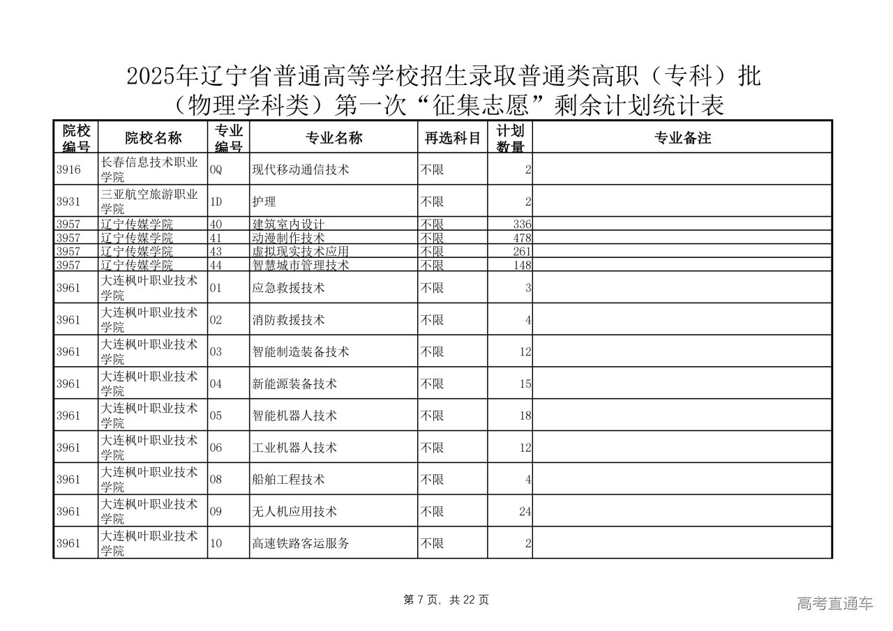 2025年辽宁省普通高等学校招生录取普通类高职(专科)批(物理学科类)第一次“征集志愿”剩余计划统计表(点击链接下载查看).xlsx