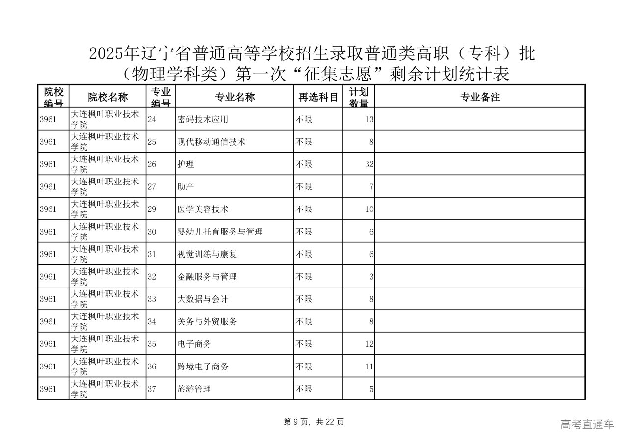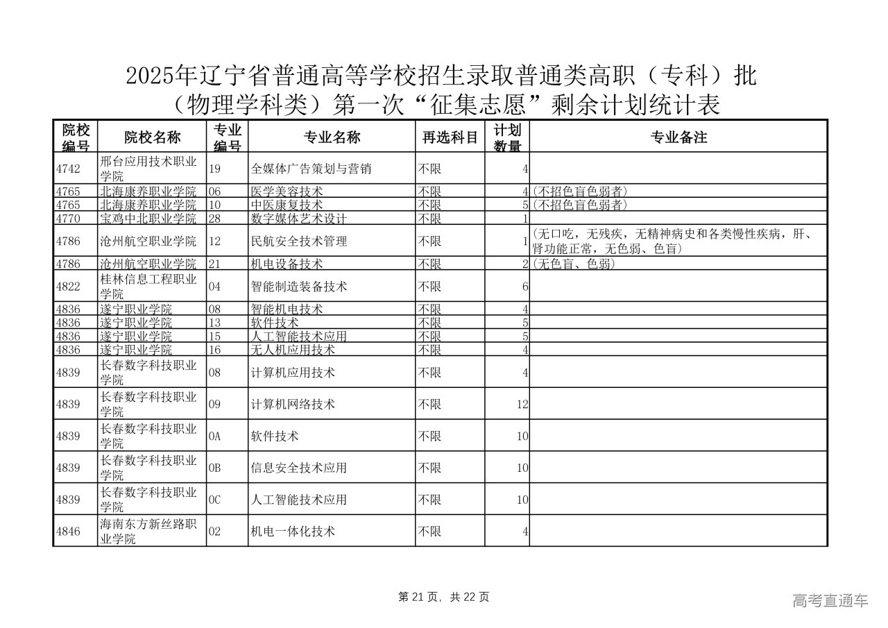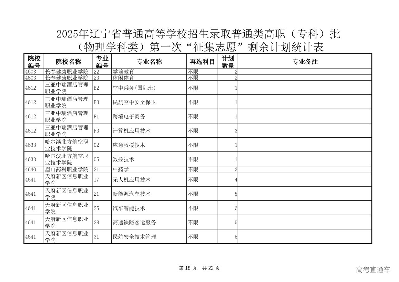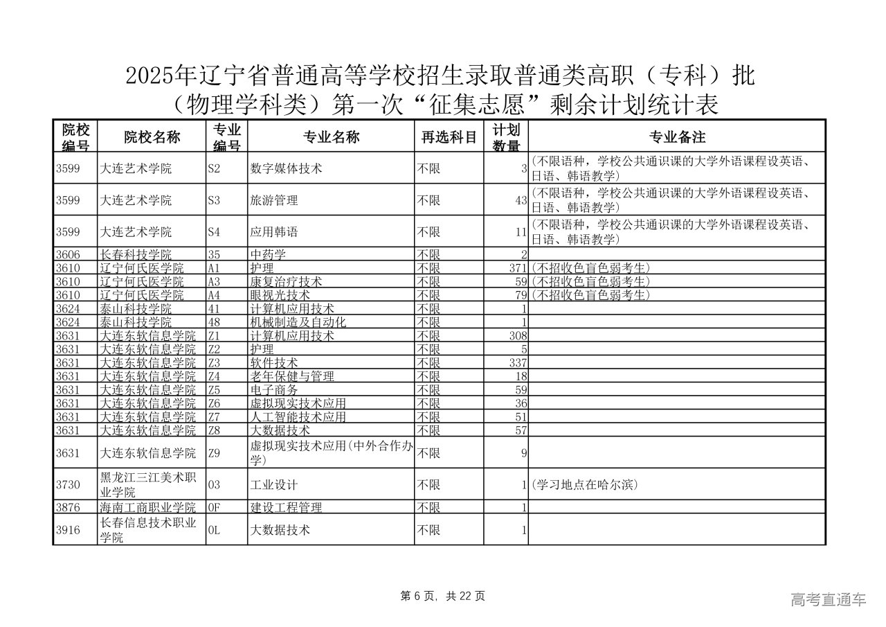 2025年辽宁省普通高等学校招生录取普通类高职(专科)批(物理学科类)第一次“征集志愿”剩余计划统计表(点击链接下载查看).xlsx