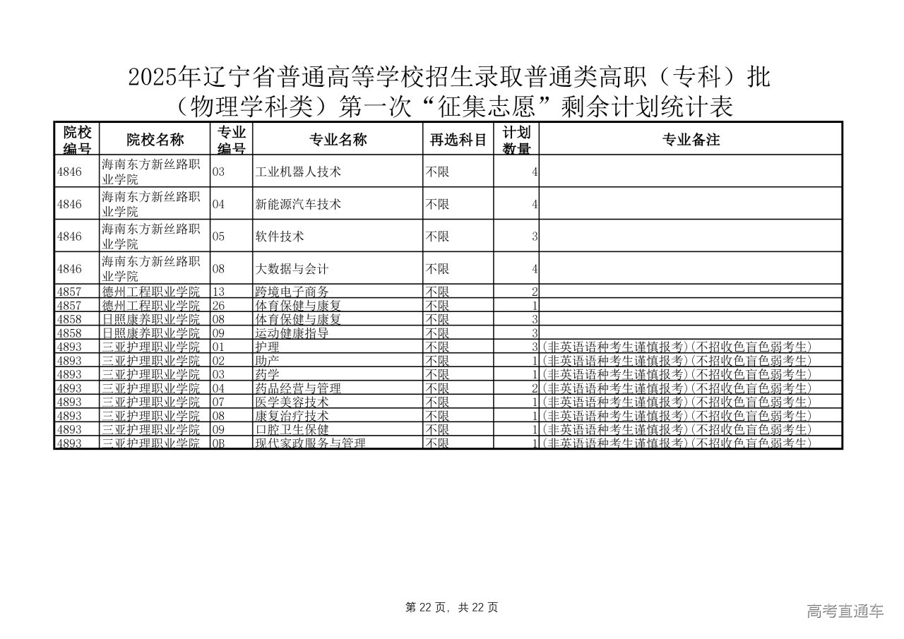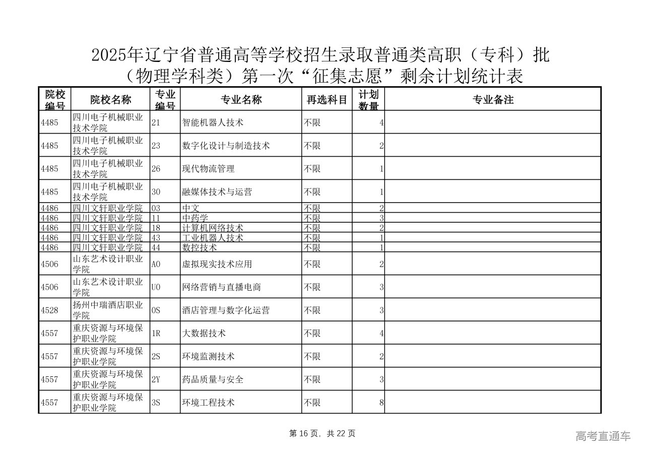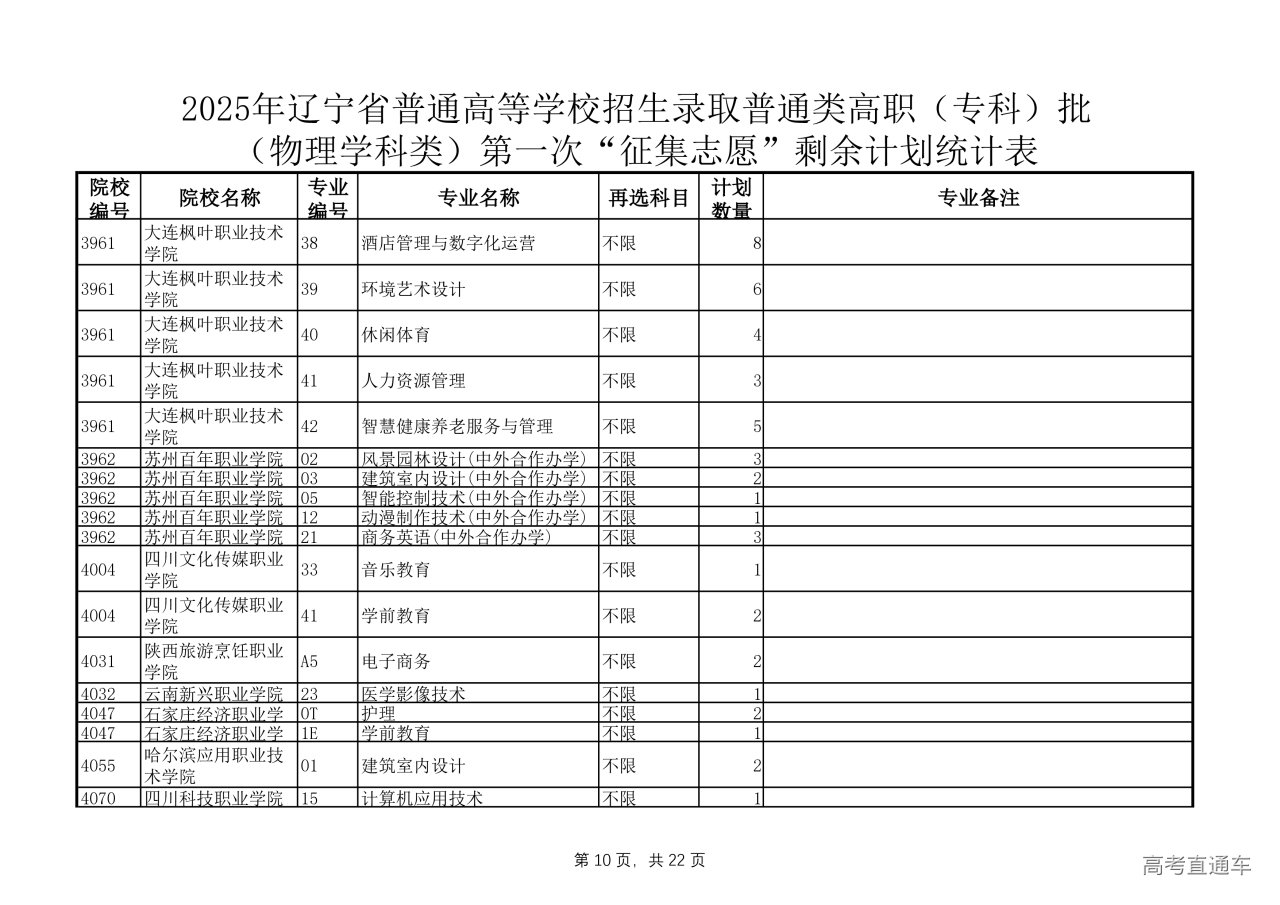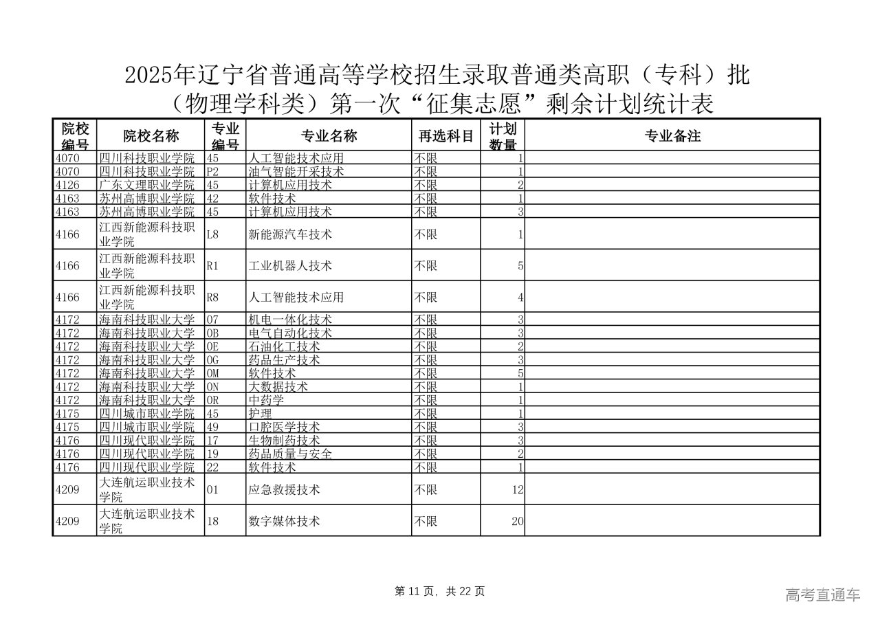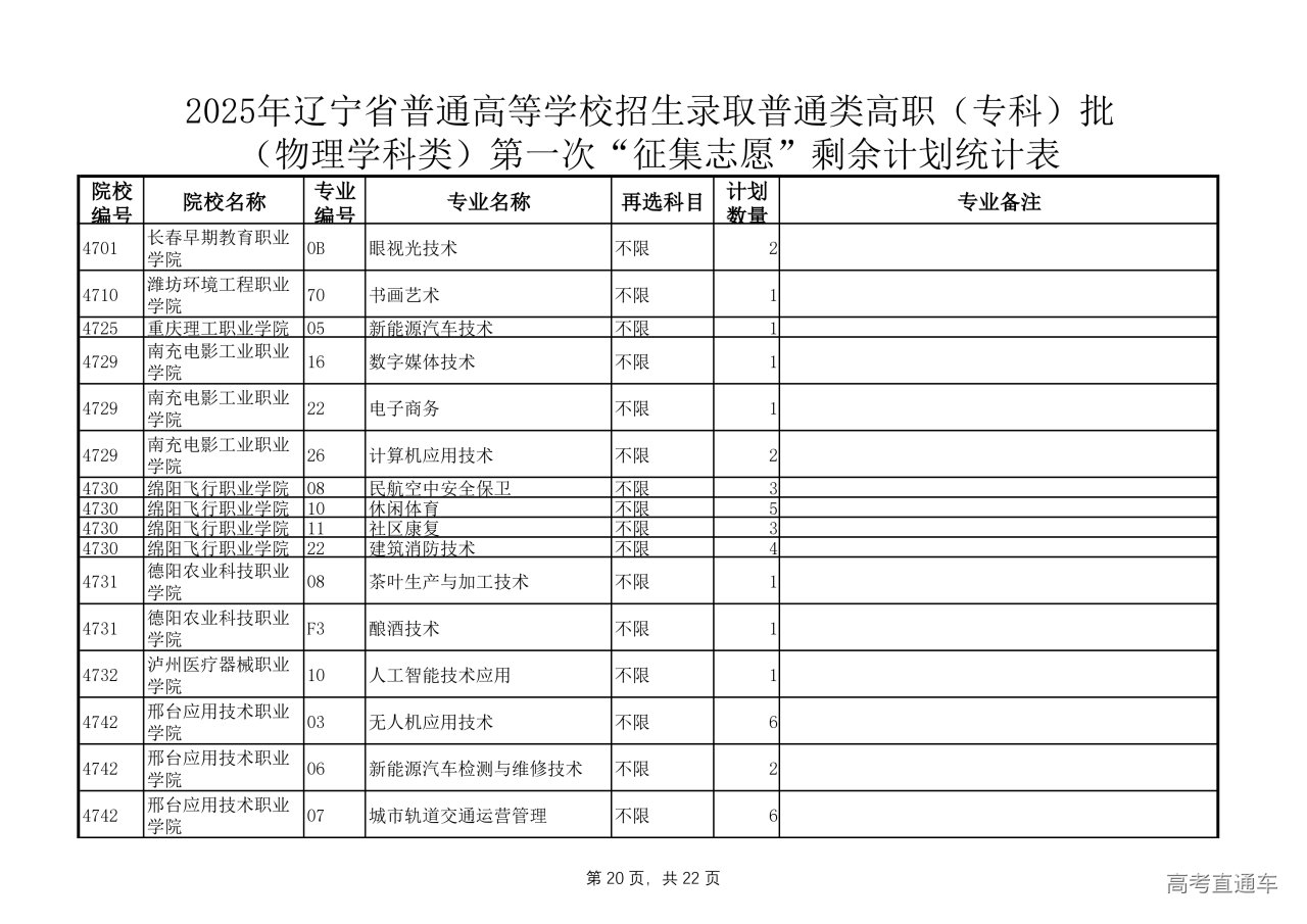 2025年辽宁省普通高等学校招生录取普通类高职(专科)批(物理学科类)第一次“征集志愿”剩余计划统计表(点击链接下载查看).xlsx