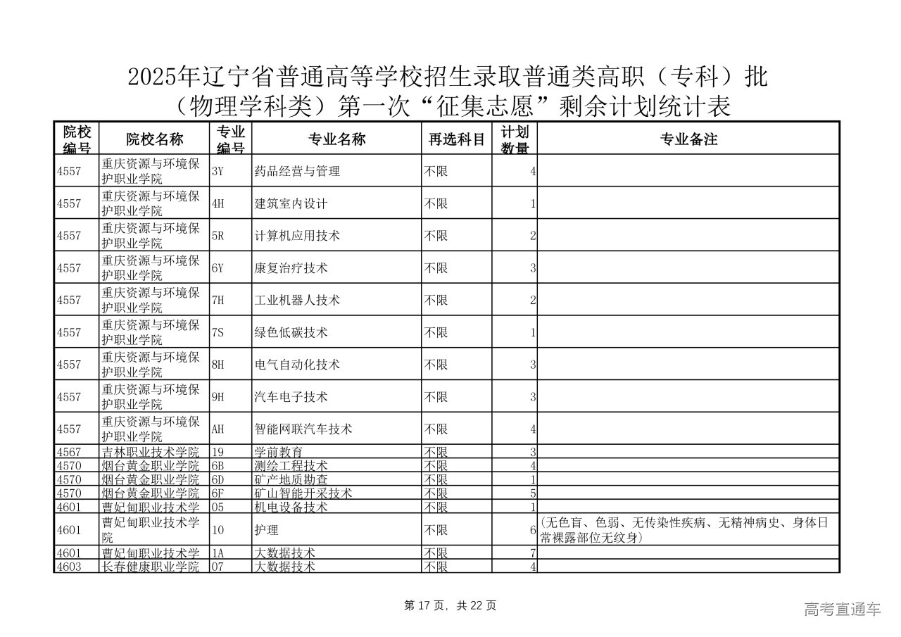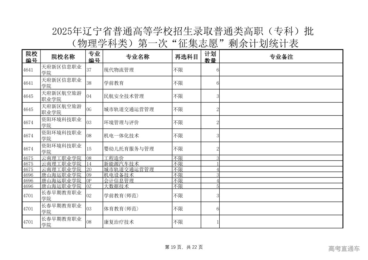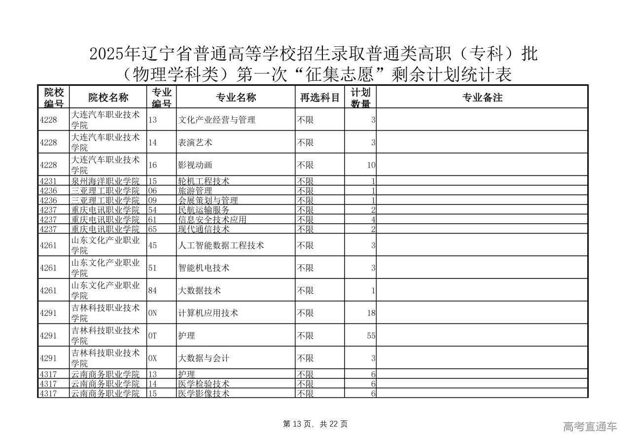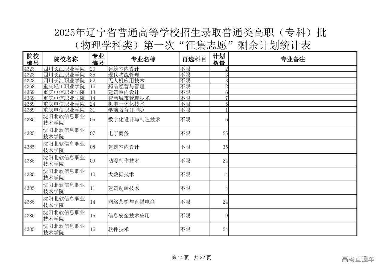 2025年辽宁省普通高等学校招生录取普通类高职(专科)批(物理学科类)第一次“征集志愿”剩余计划统计表(点击链接下载查看).xlsx