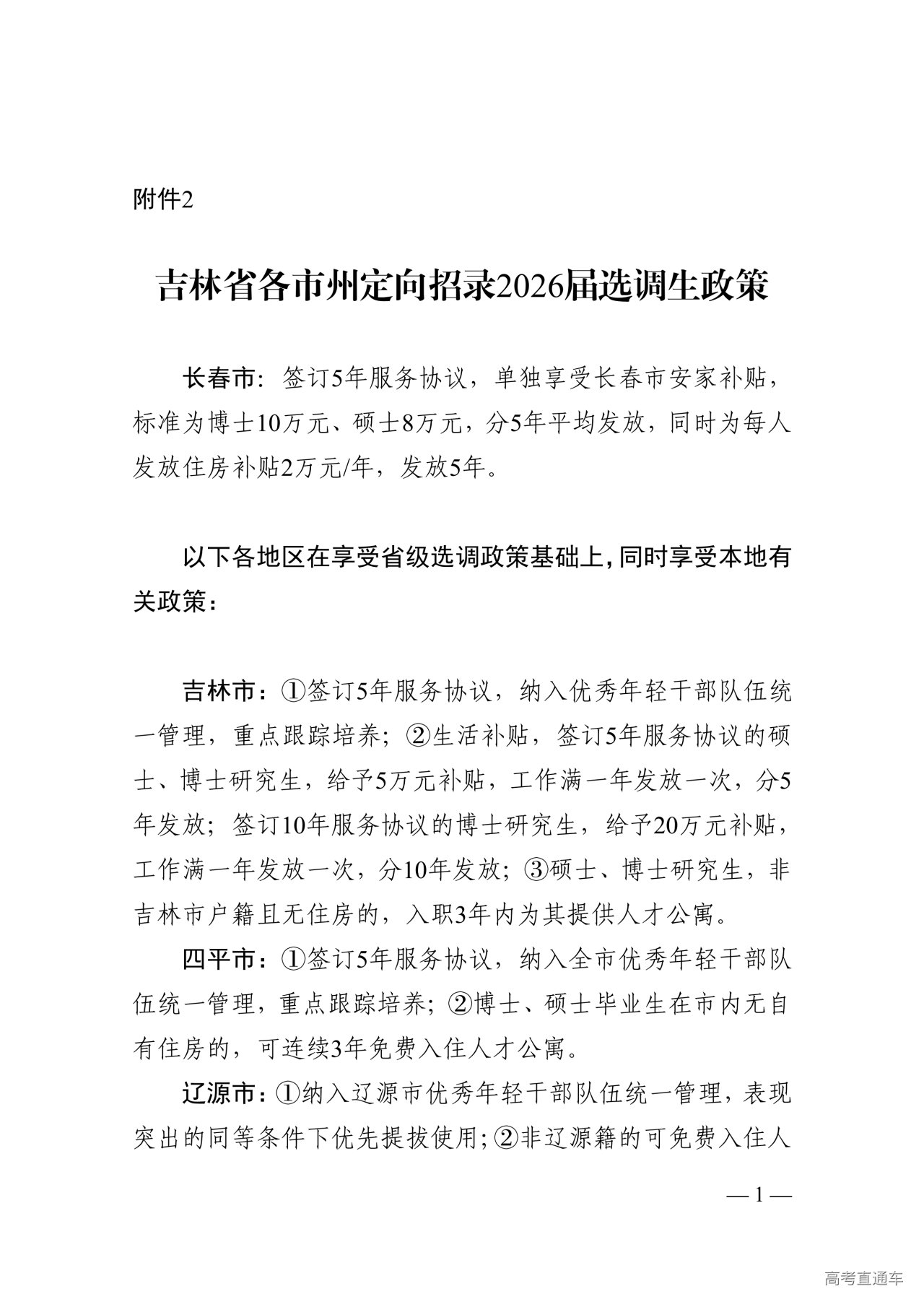 附件:1. 吉林省定向招录2026届选调生推荐表