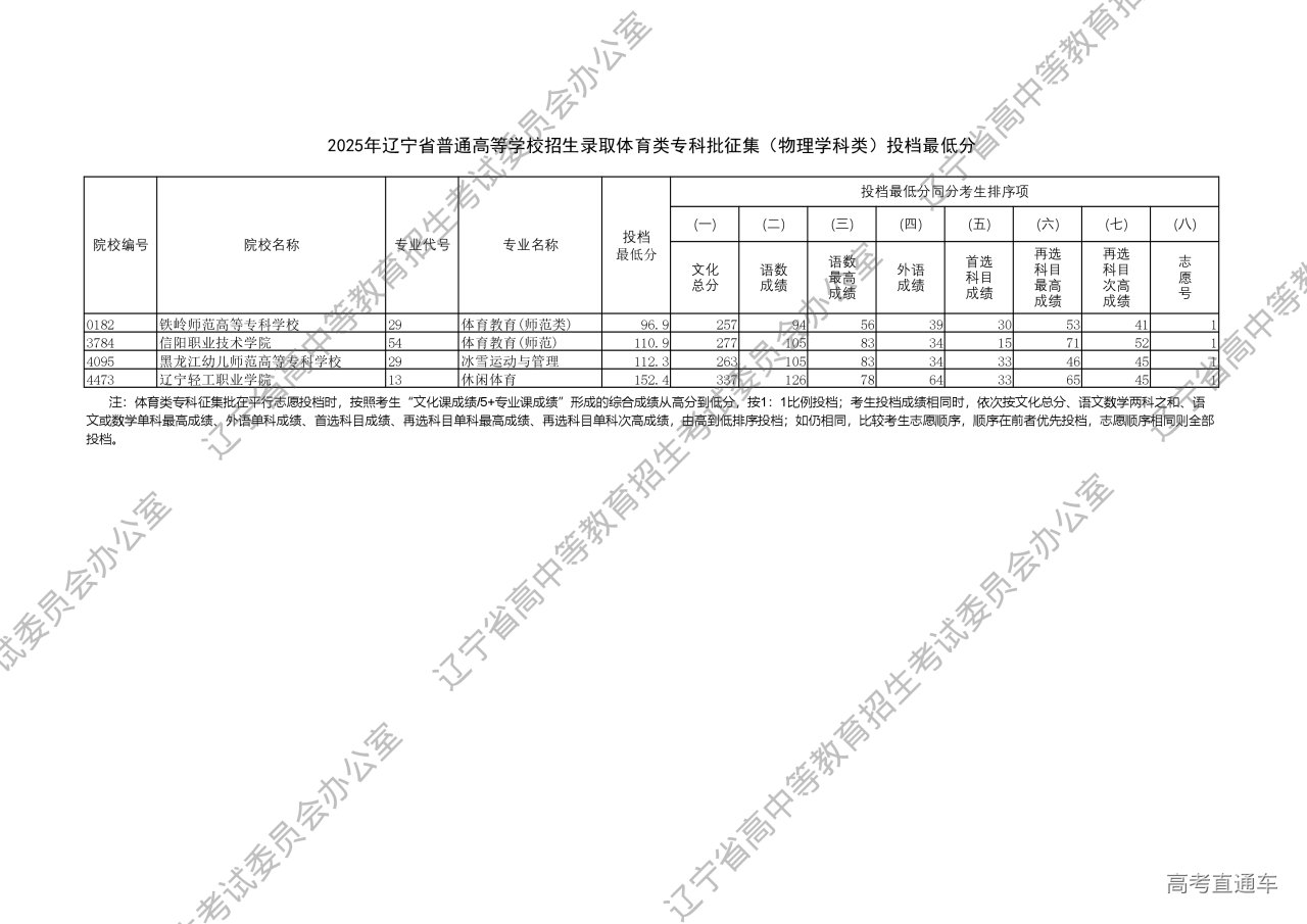 2025年辽宁省普通高等学校招生录取体育类专科批征集(物理学科类)投档最低分(.pdf