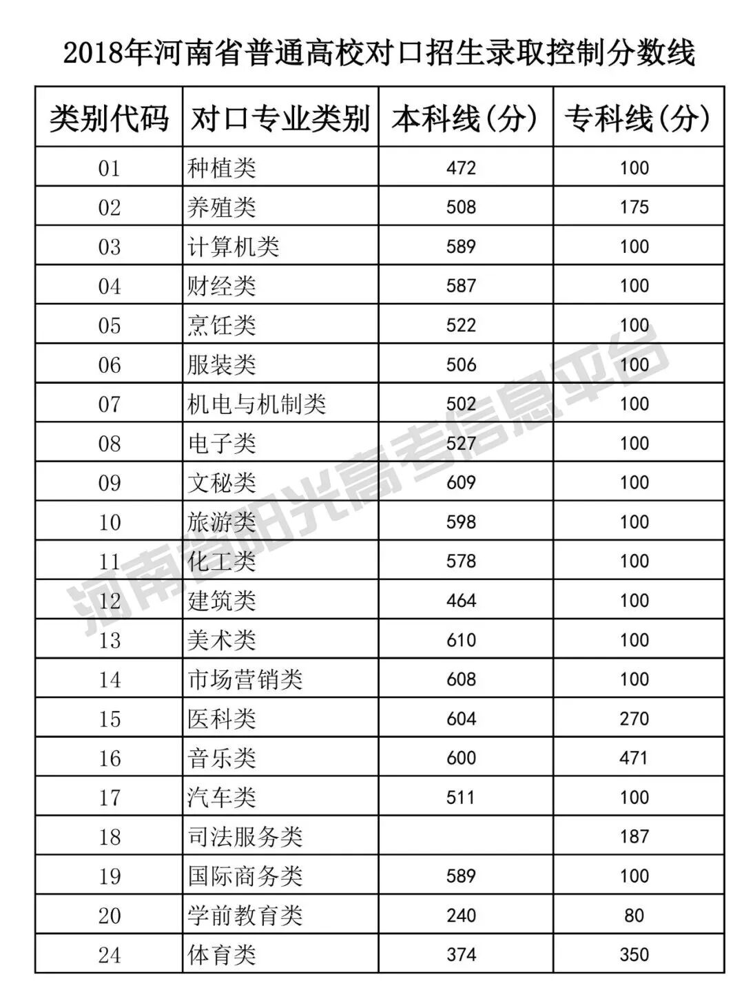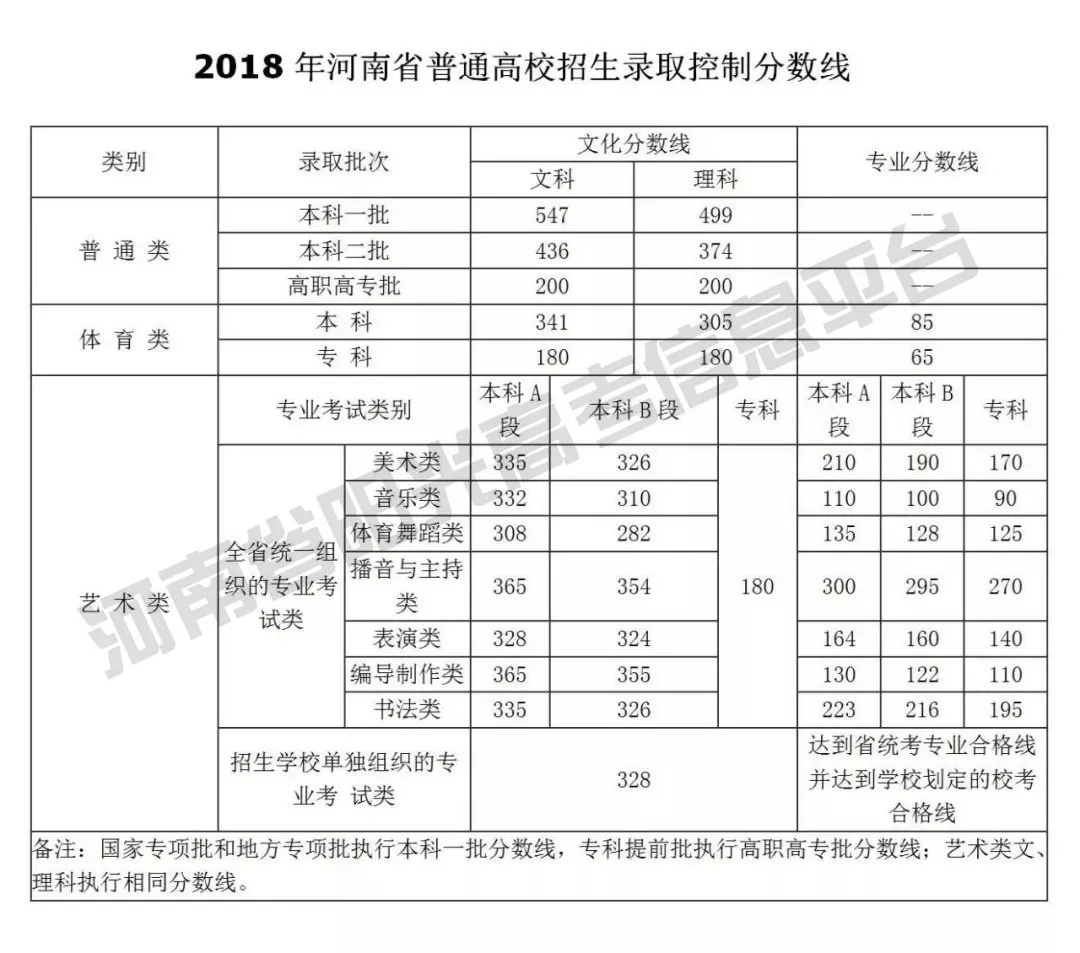 以下为2018年河南省普通高招录取控制分数线,供大家参考: