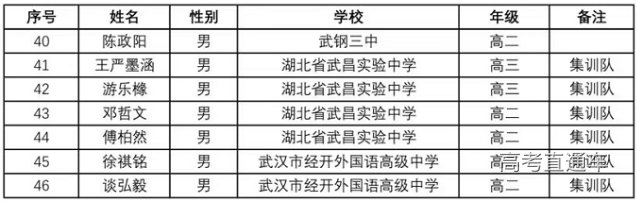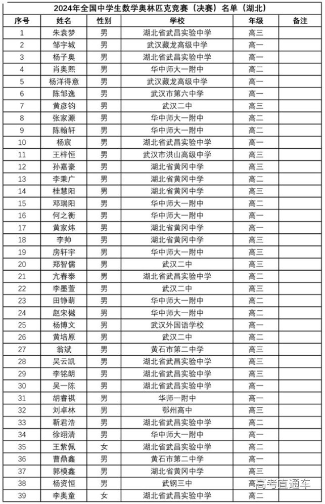 2024年第40届全国中学生数学联赛省队名单(湖北)