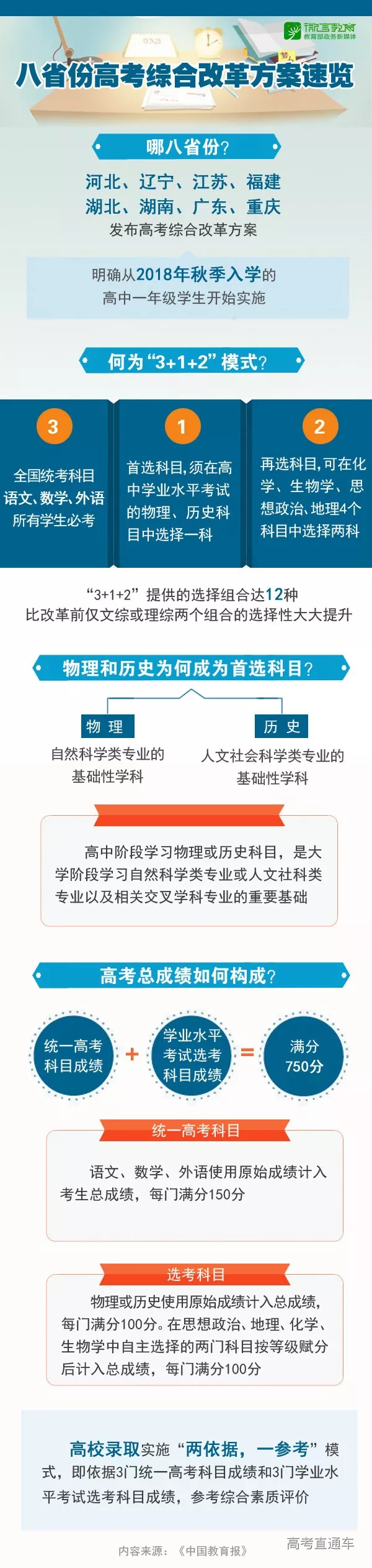 那么其他省份,尤其是2018年已启动高考综合改革的广东、河北、辽宁、江苏、湖南、湖北、福建、重庆这8个省市,未来的新高考到底什么样?很多高中生和家长心里还没有很清晰的认识。今天,小编就用20个问题,带大家来详细了解一下8省市的改革方案。