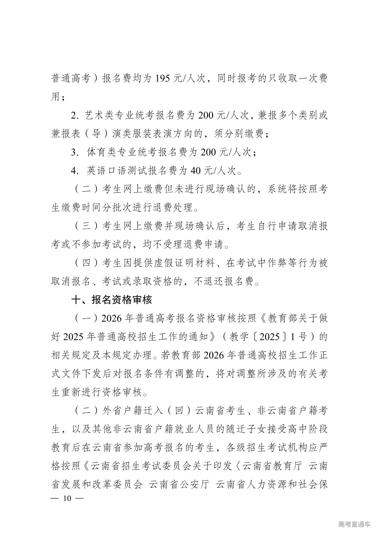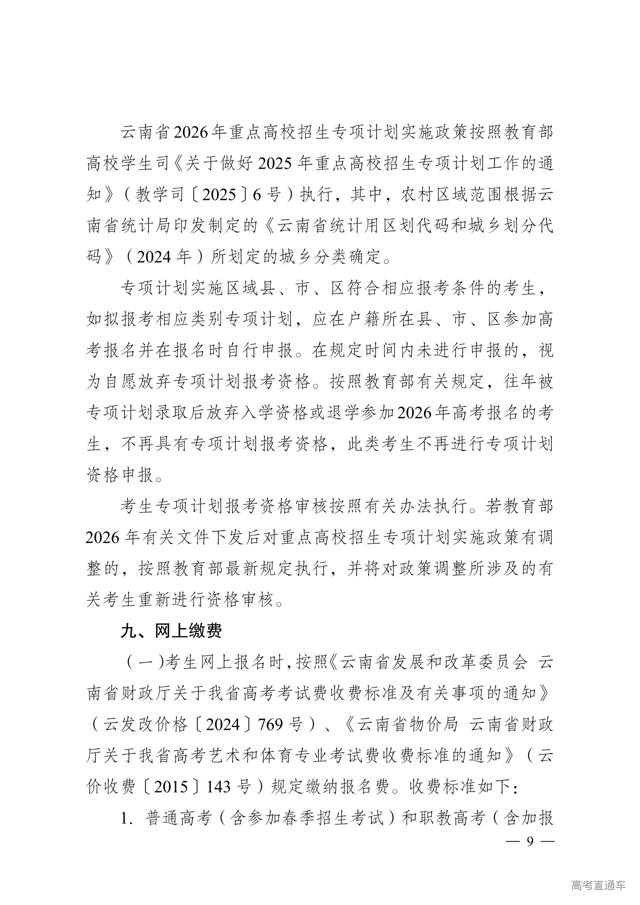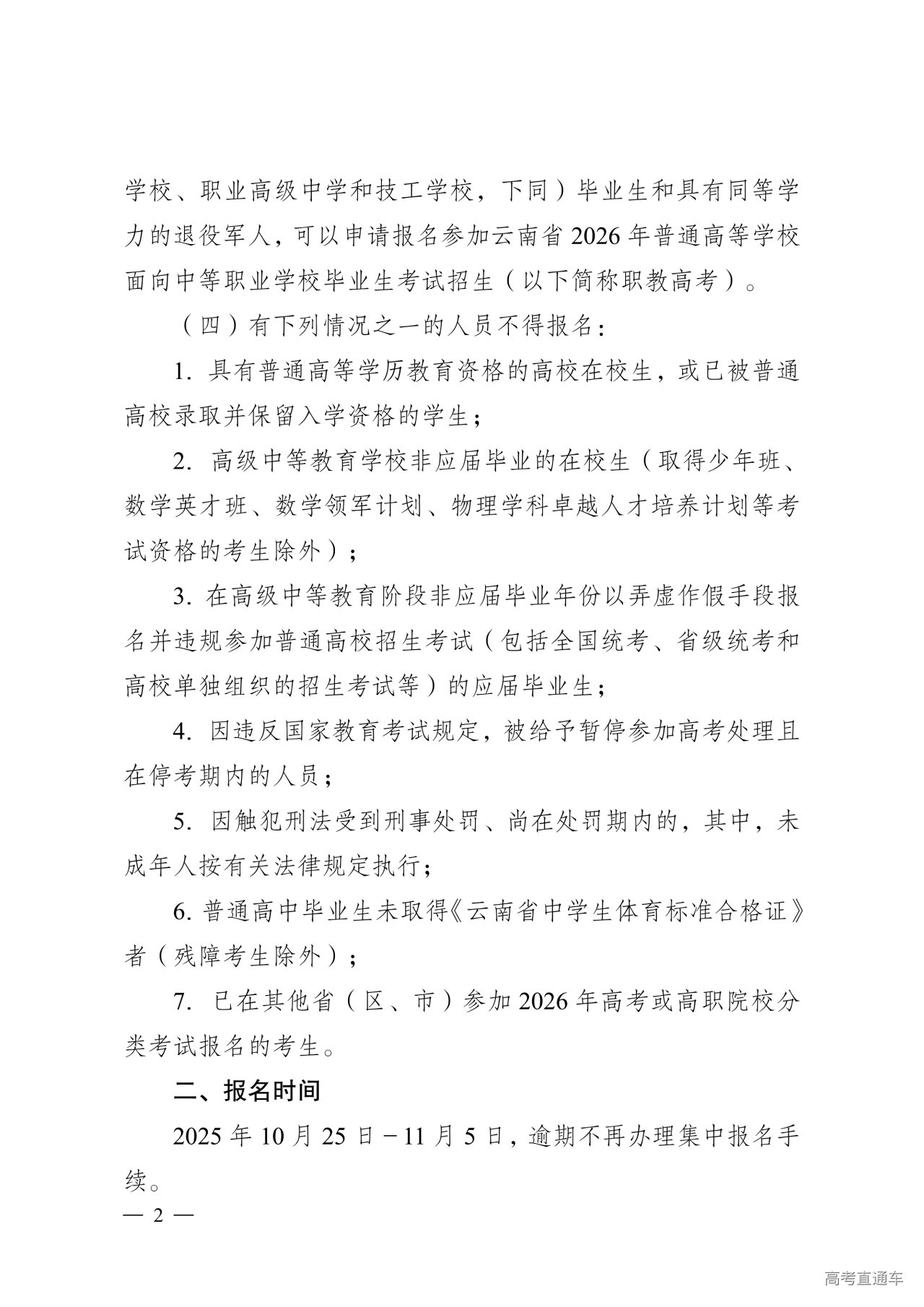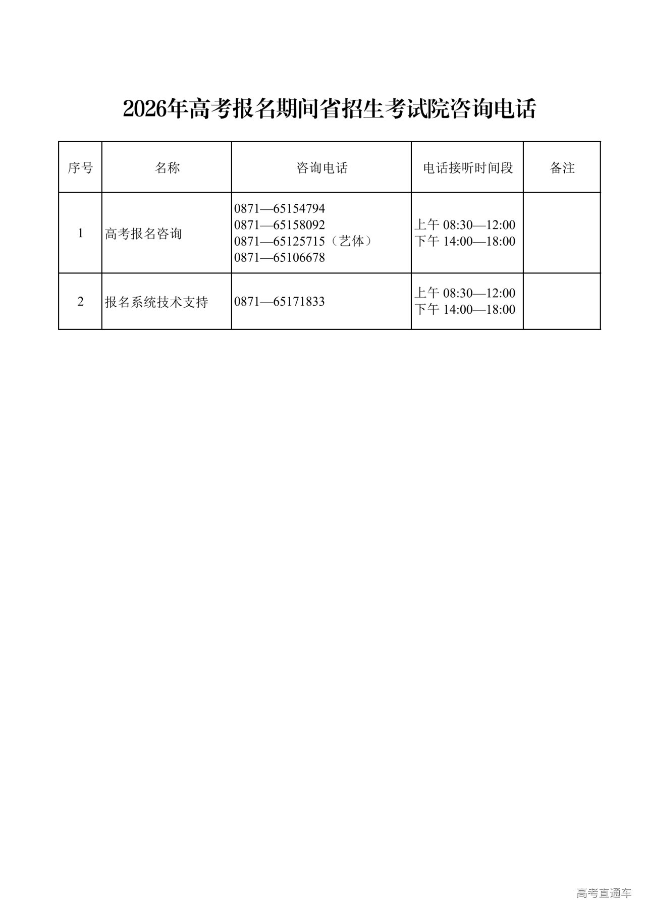 云南省2026年普通高校招生报名(以下简称高考报名)工作按照教育部有关规定和《云南省2026年普通高校招生报名工作规定》(附件1)执行。