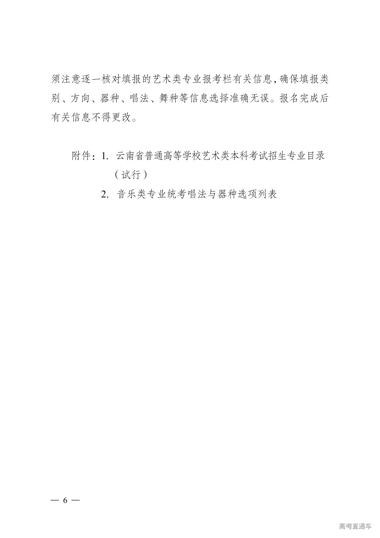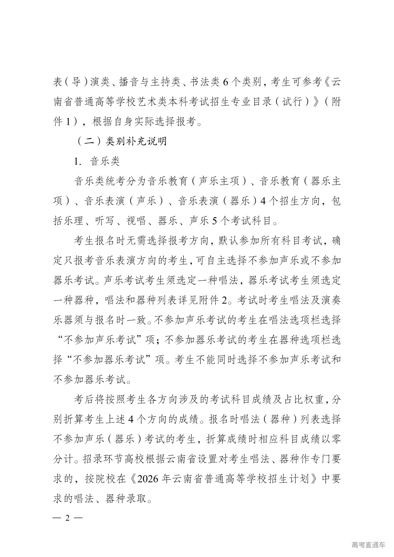 附件2:云南省2026年普通高校招生艺术类专业报考说明