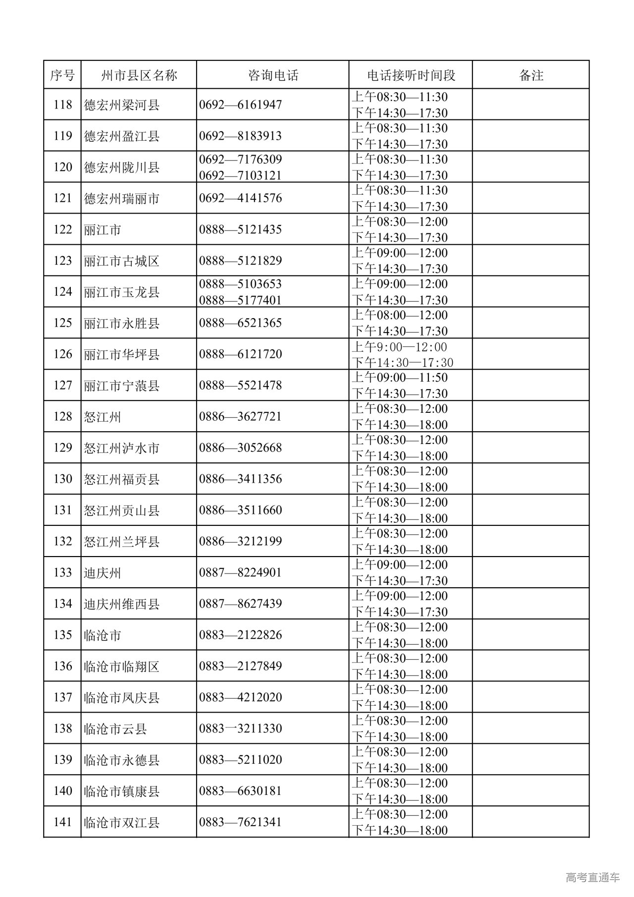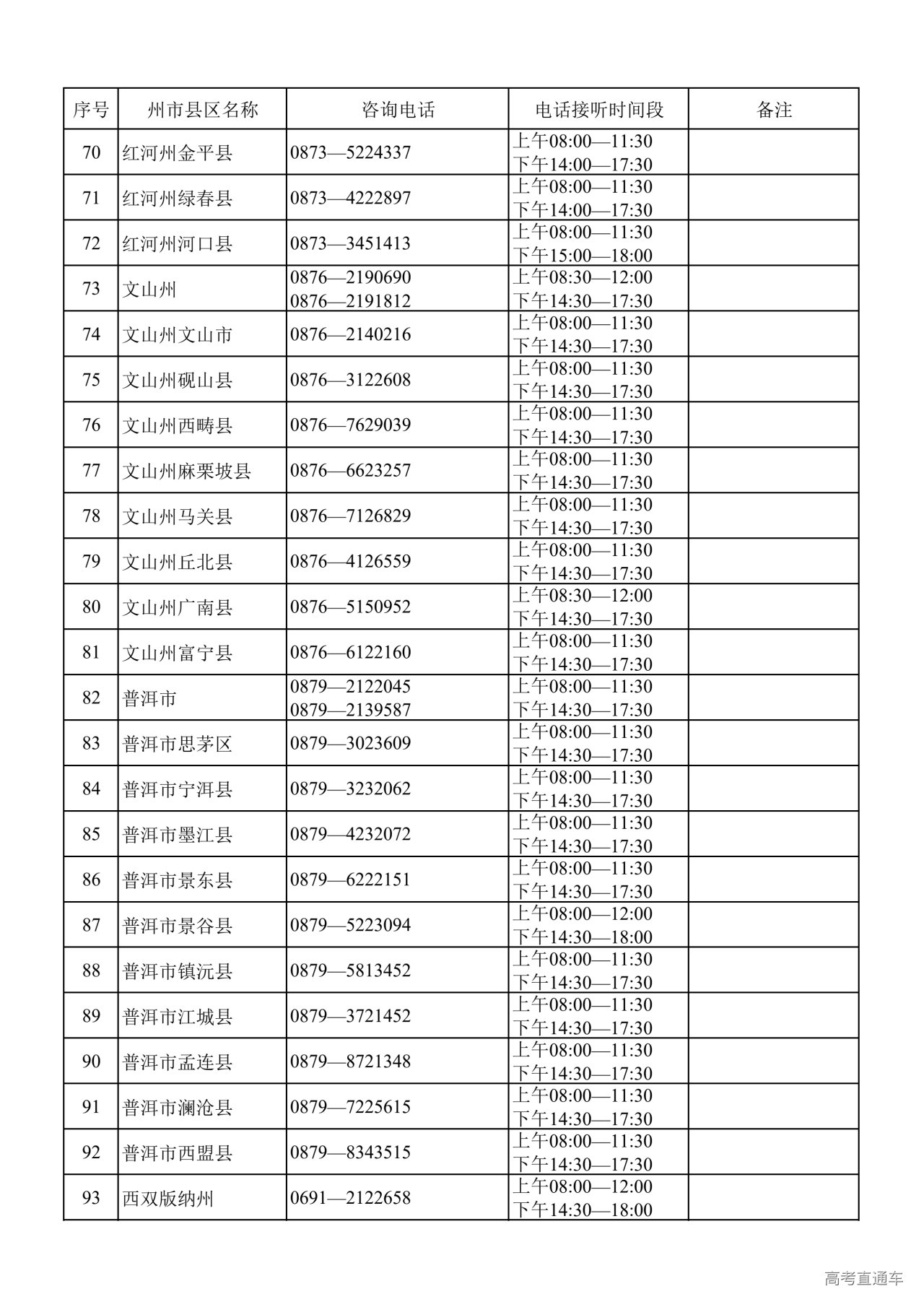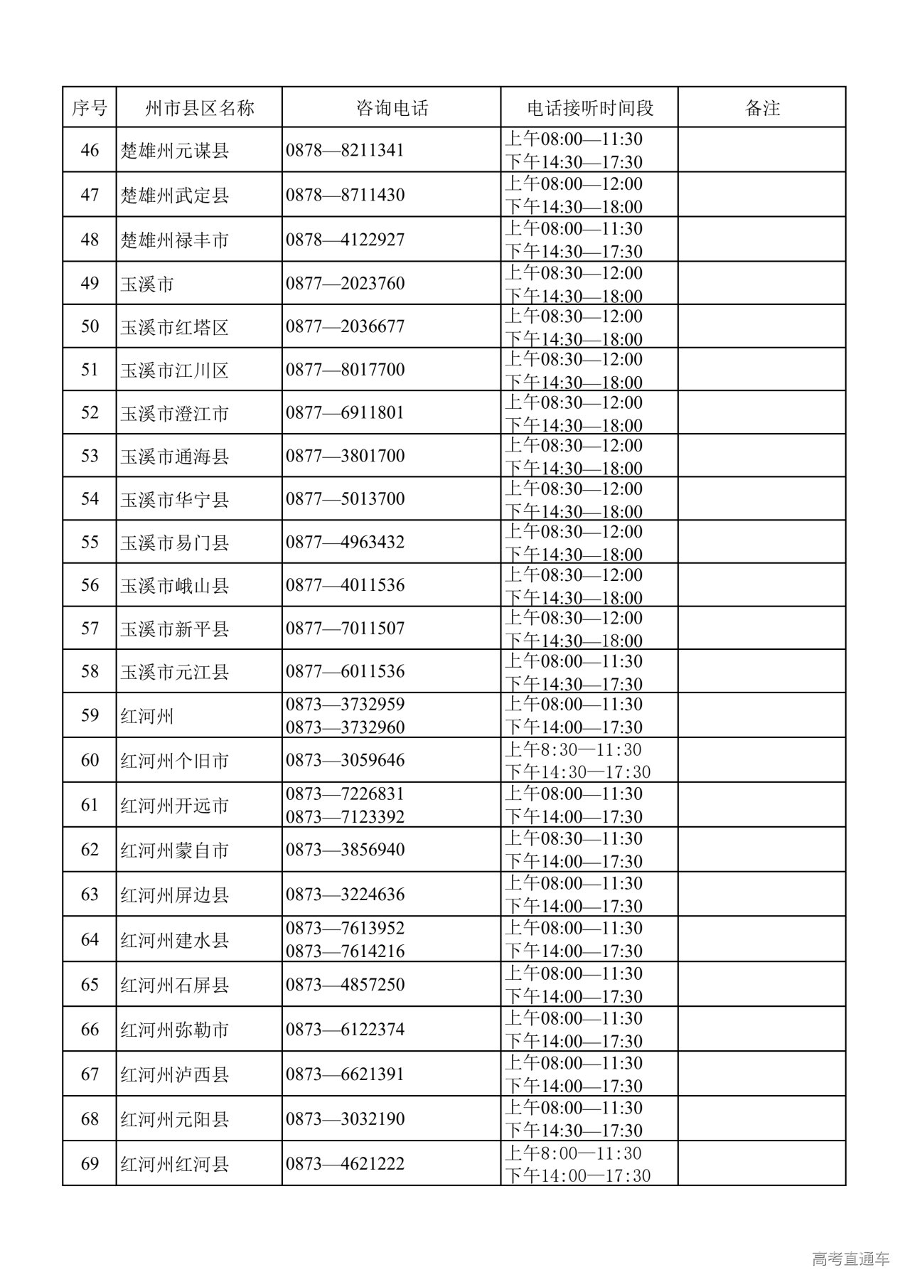 附件4:云南省2026年高考报名期间州市县区招生考试机构咨询电话