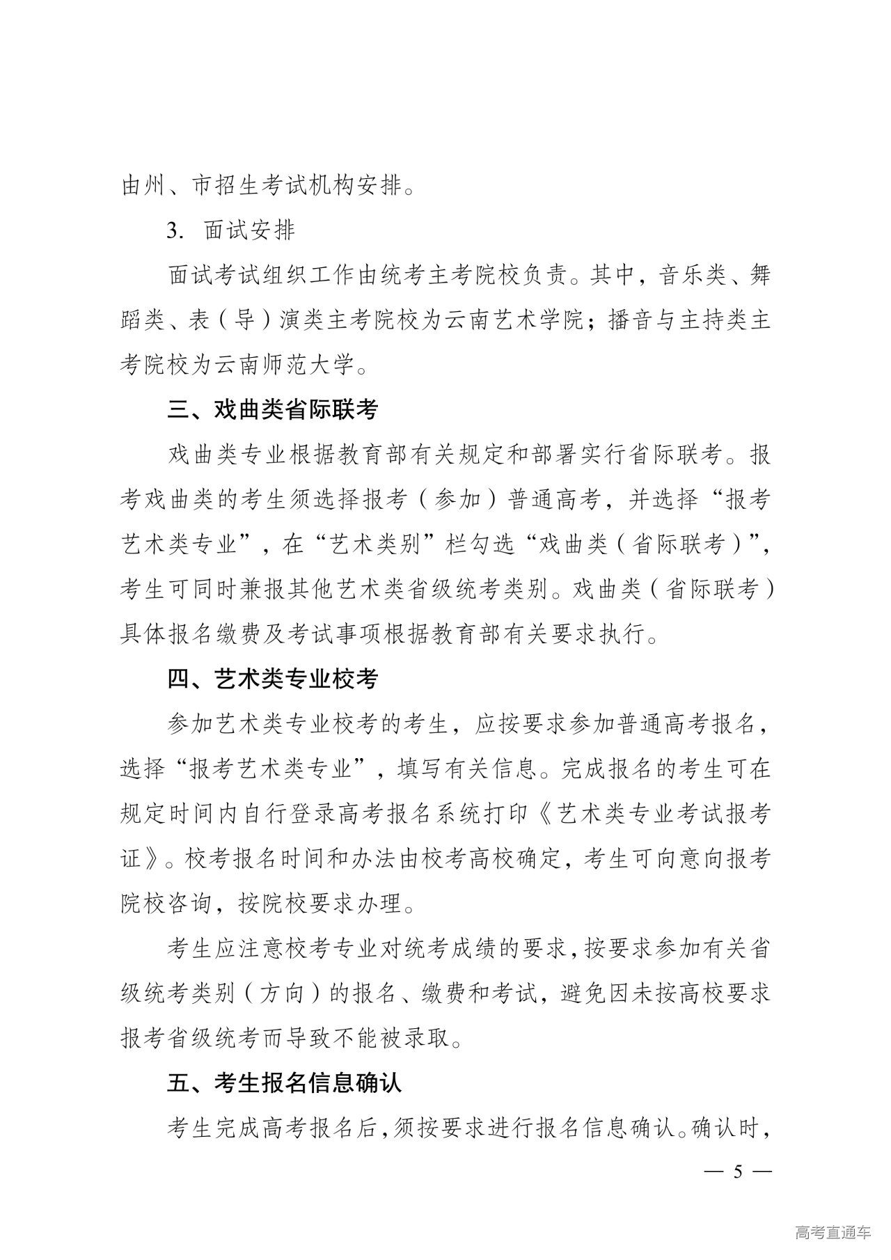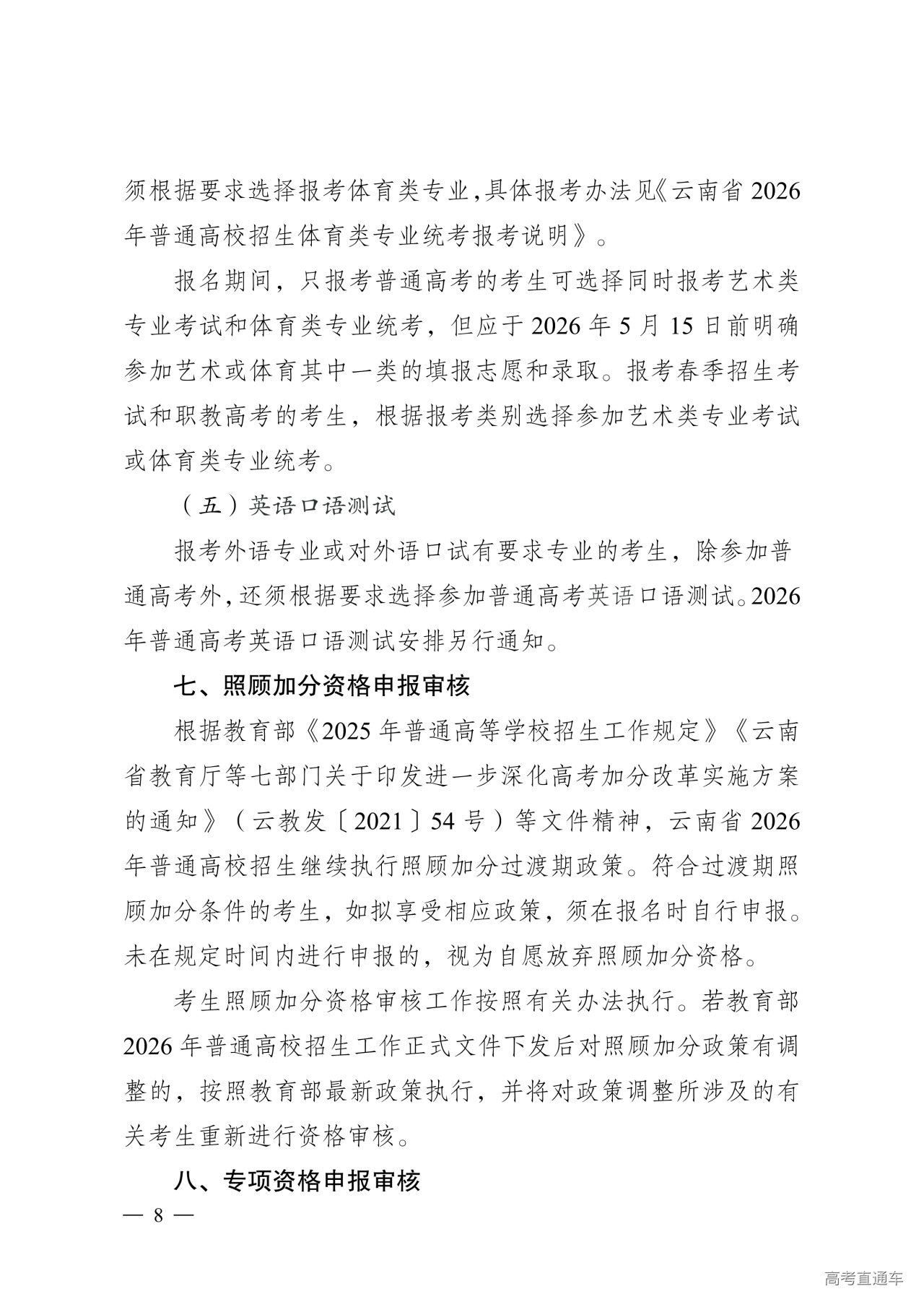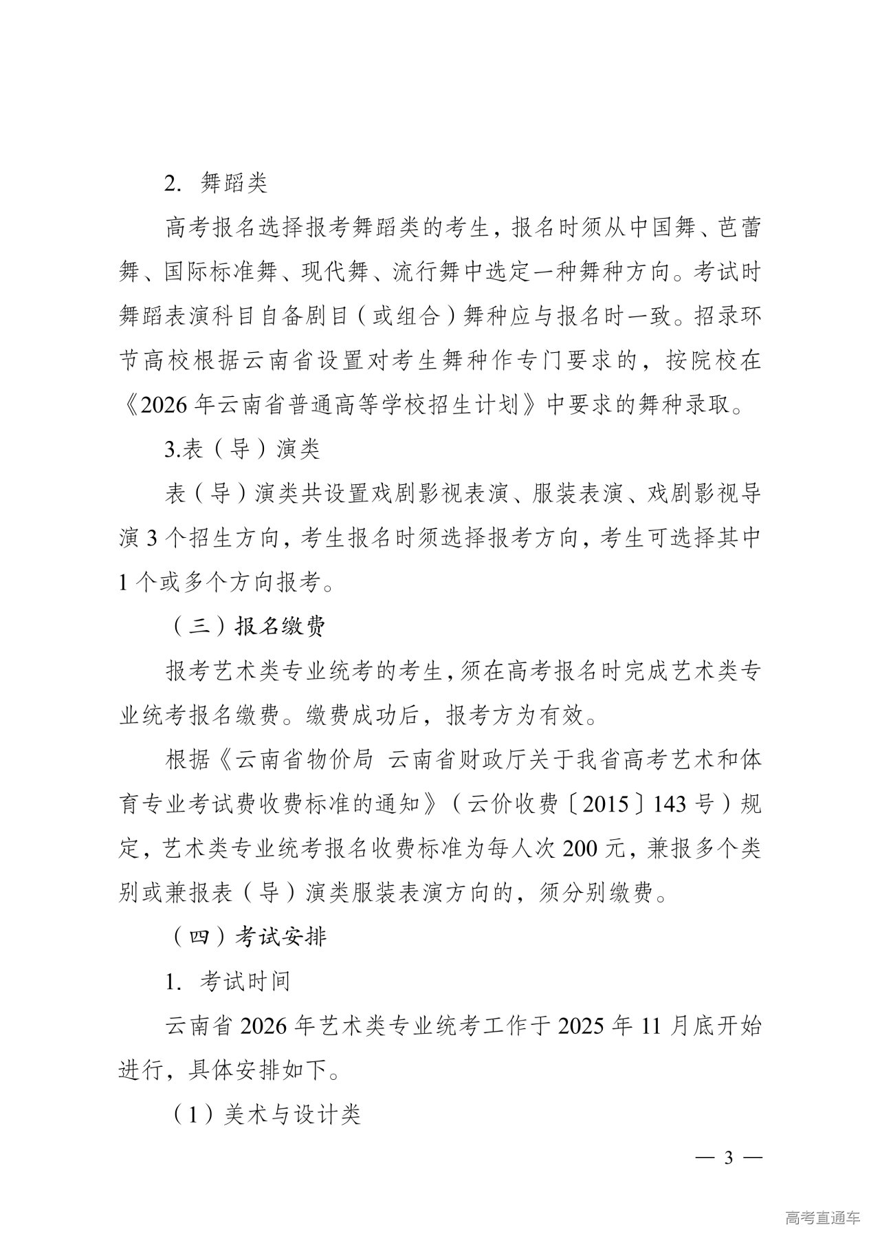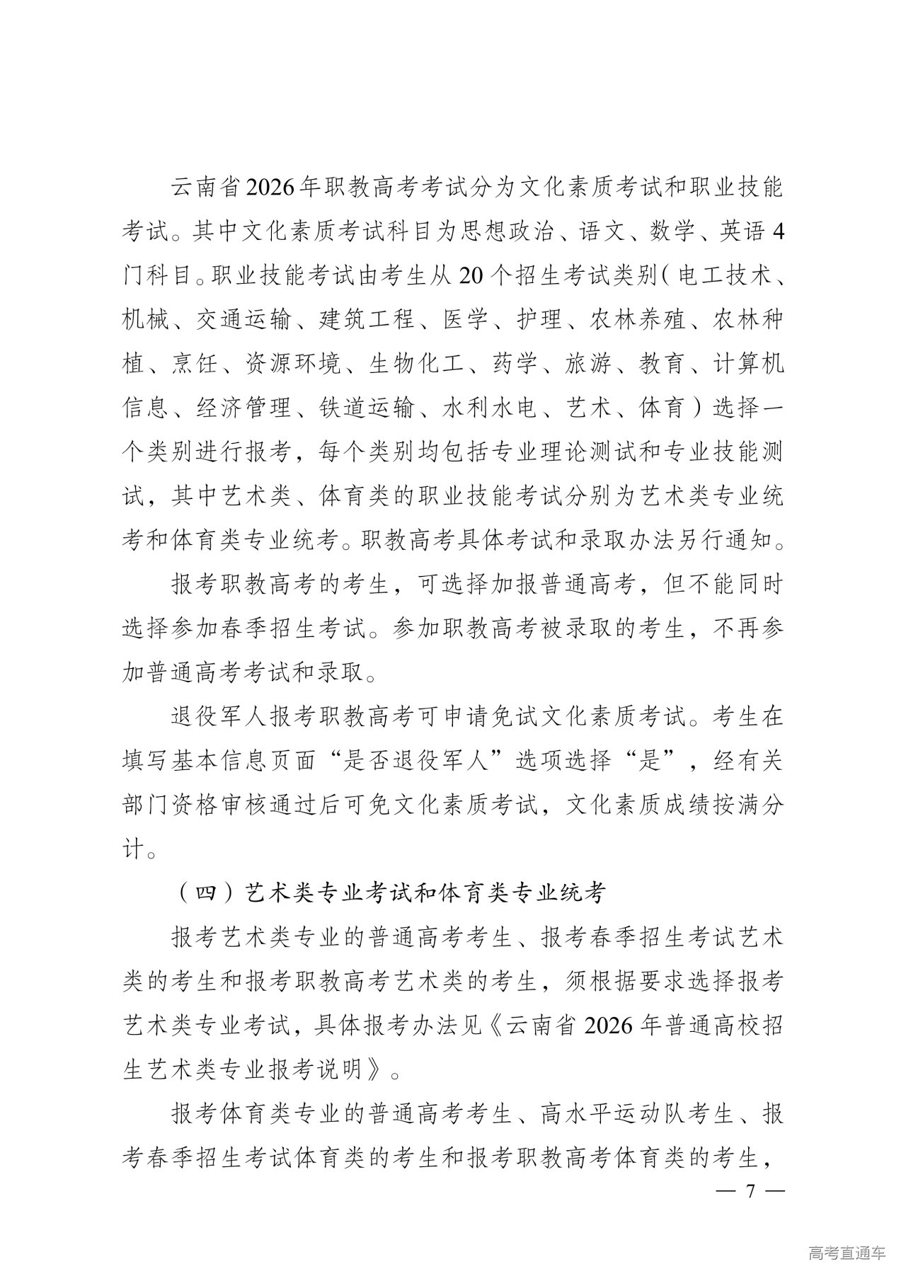 报考艺术类专业的普通高考考生、报考春季招生考试艺术类的考生和报考职教高考艺术类的考生,须根据要求选择参加艺术类专业考试,具体报考办法见《云南省2026年普通高校招生艺术类专业报考说明》(附件2)。
