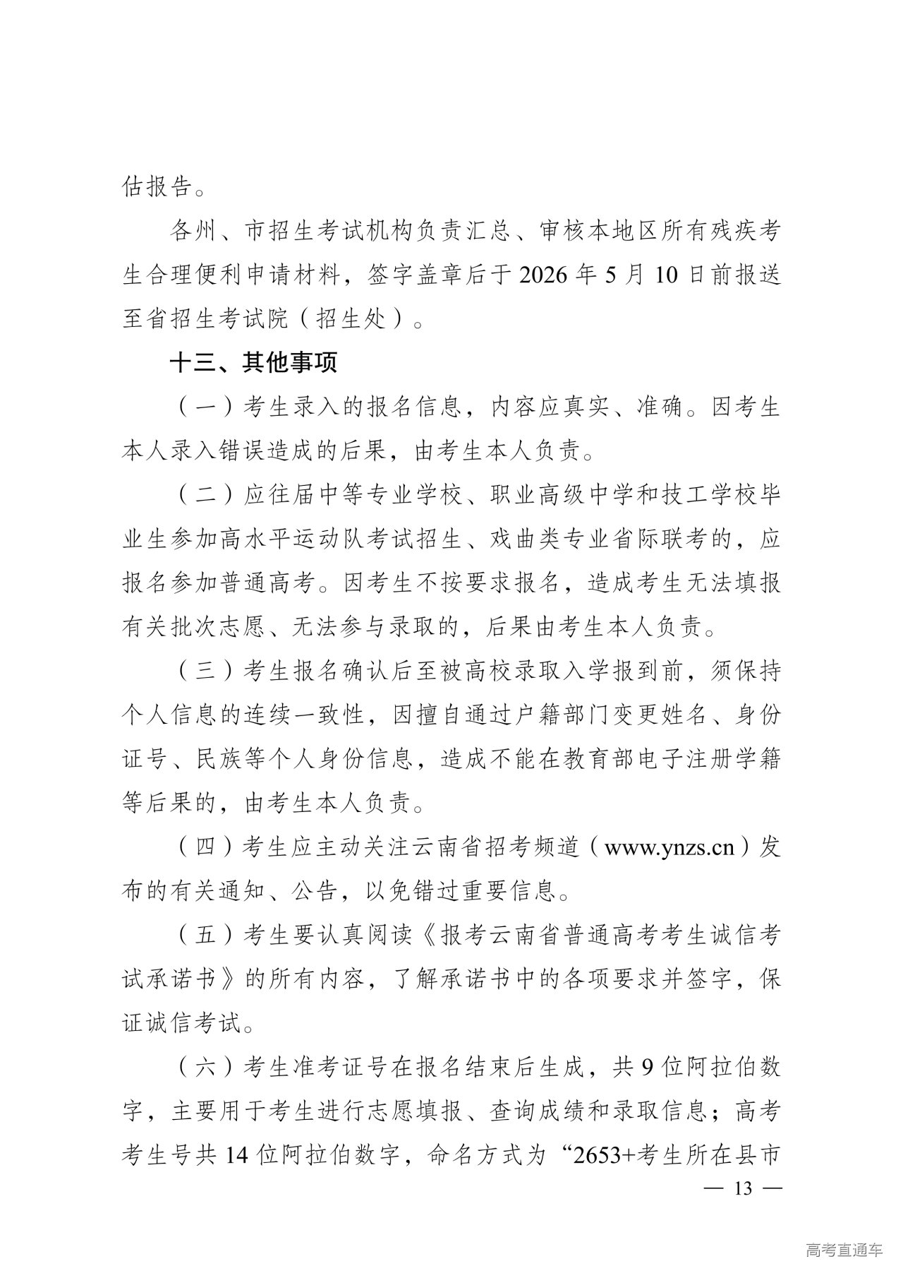 (四)考生应主动关注云南省招生考试院官方网站(https://www.ynzs.cn)发布的有关通知、公告,以免错过重要信息。