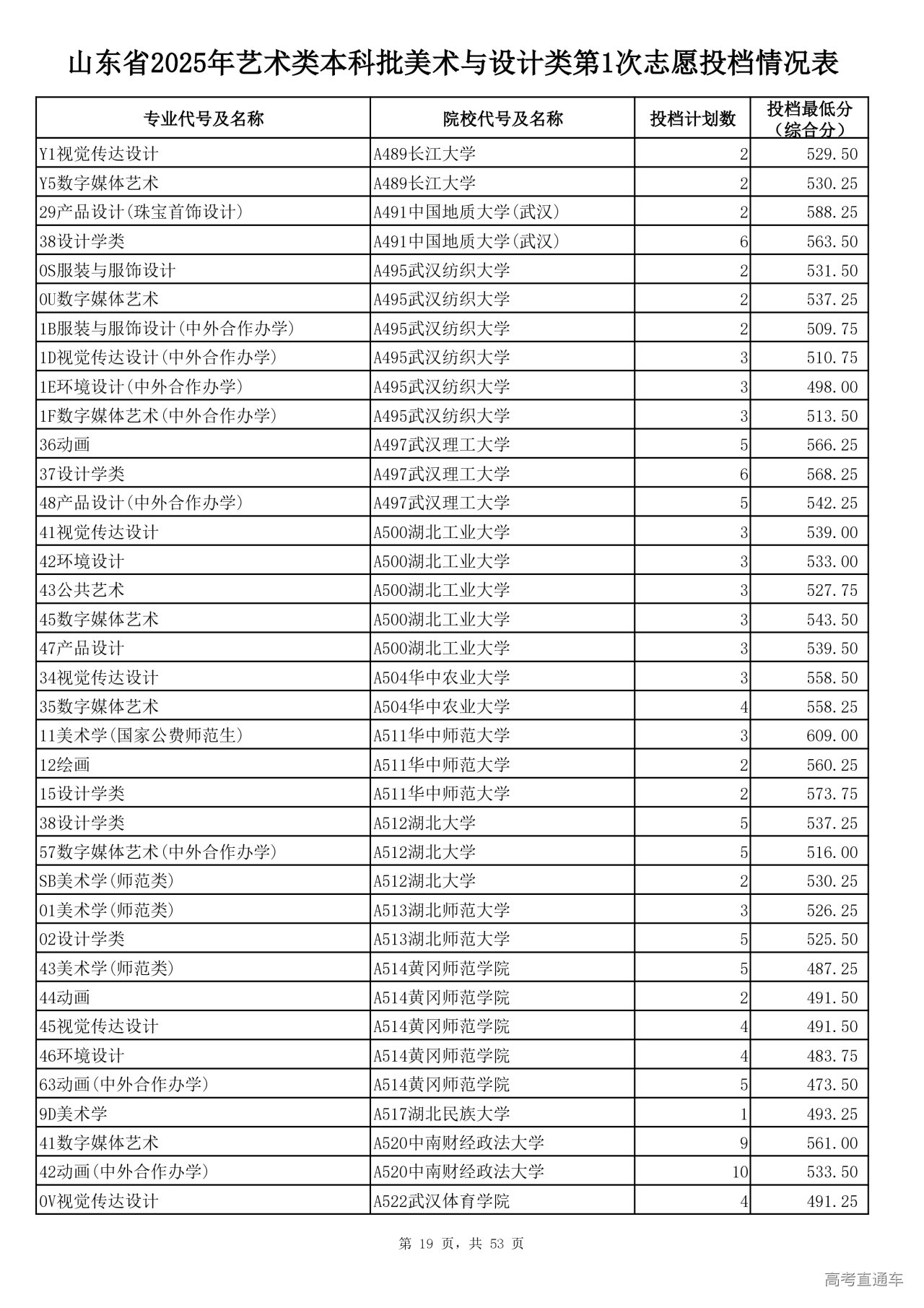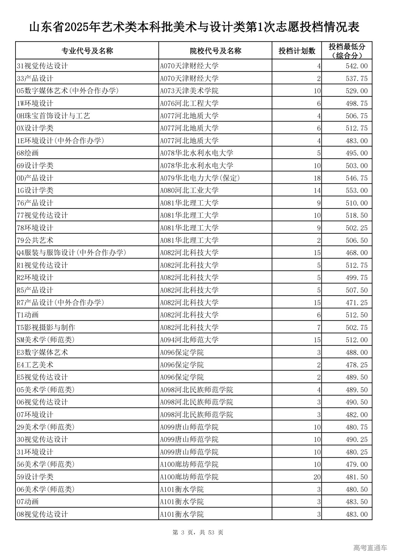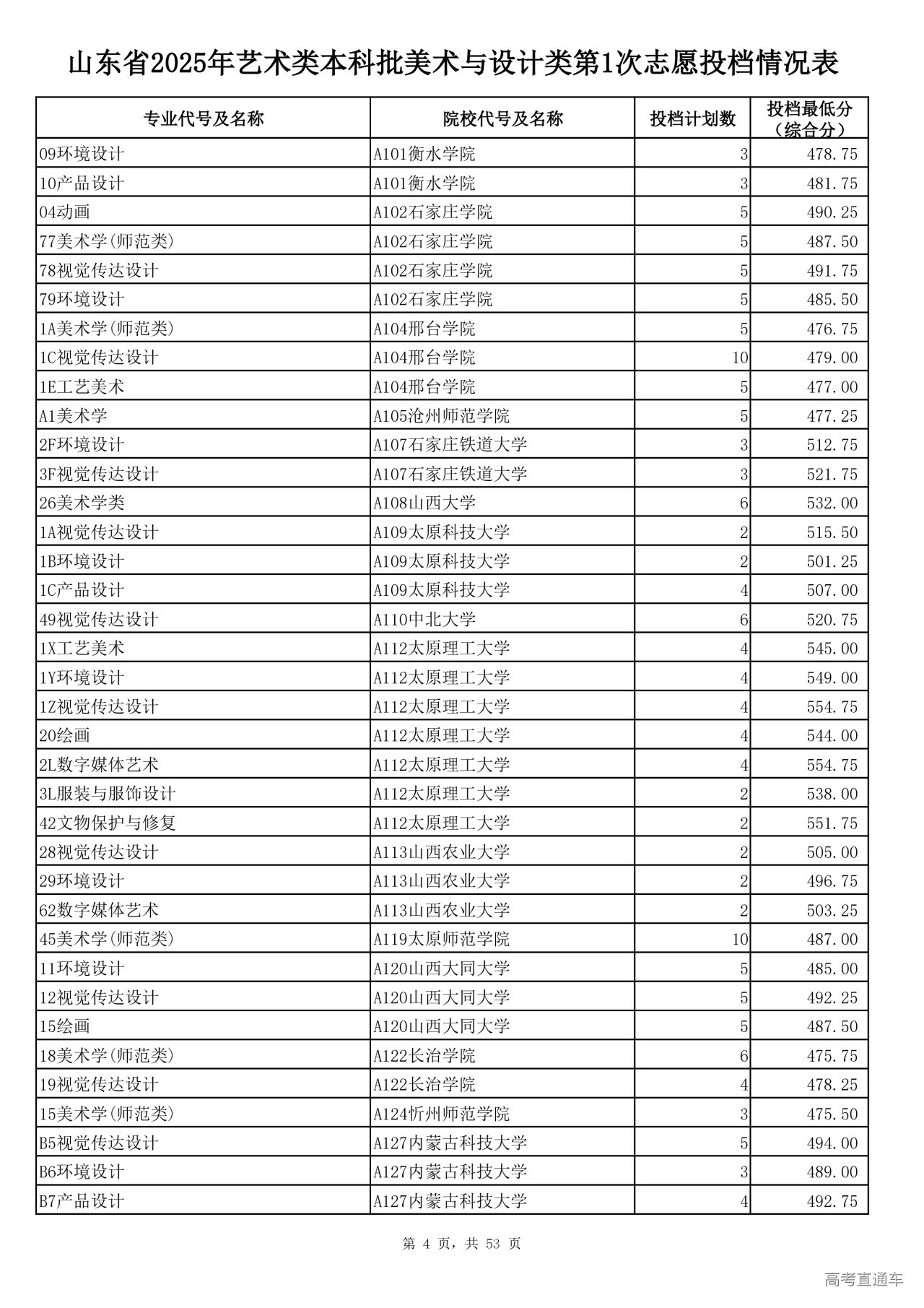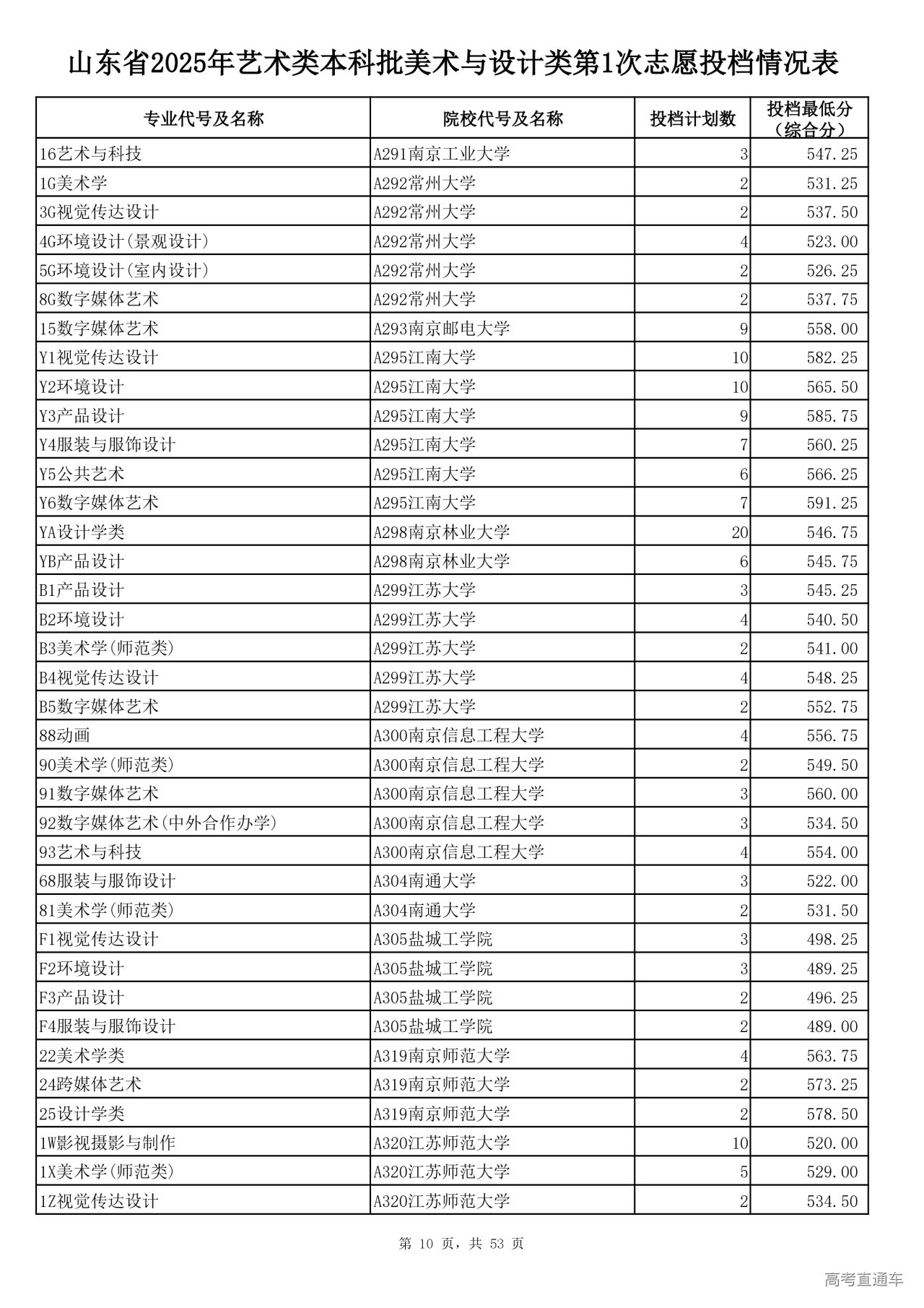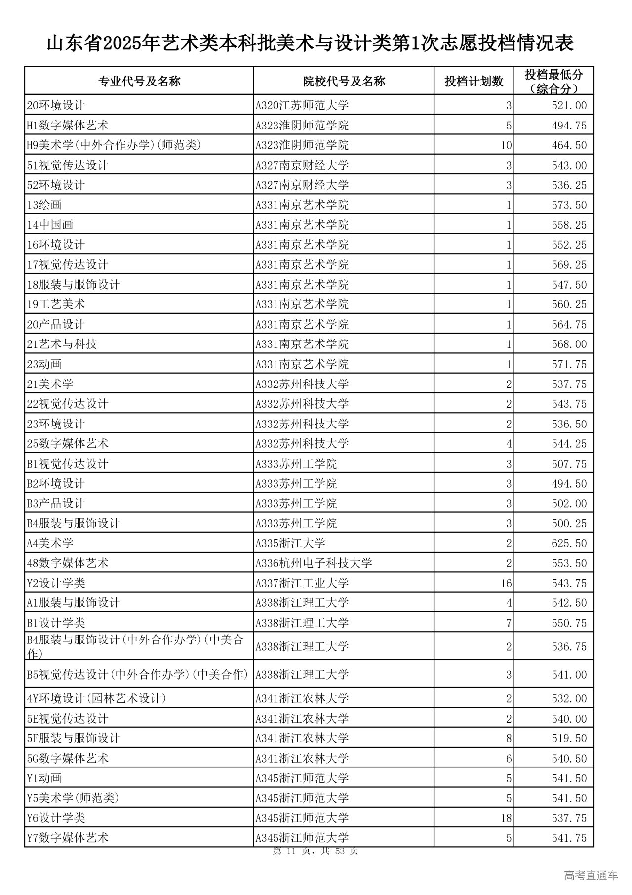 山东省2025年艺术类本科批美术与设计类第1次志愿投档情况表.xls