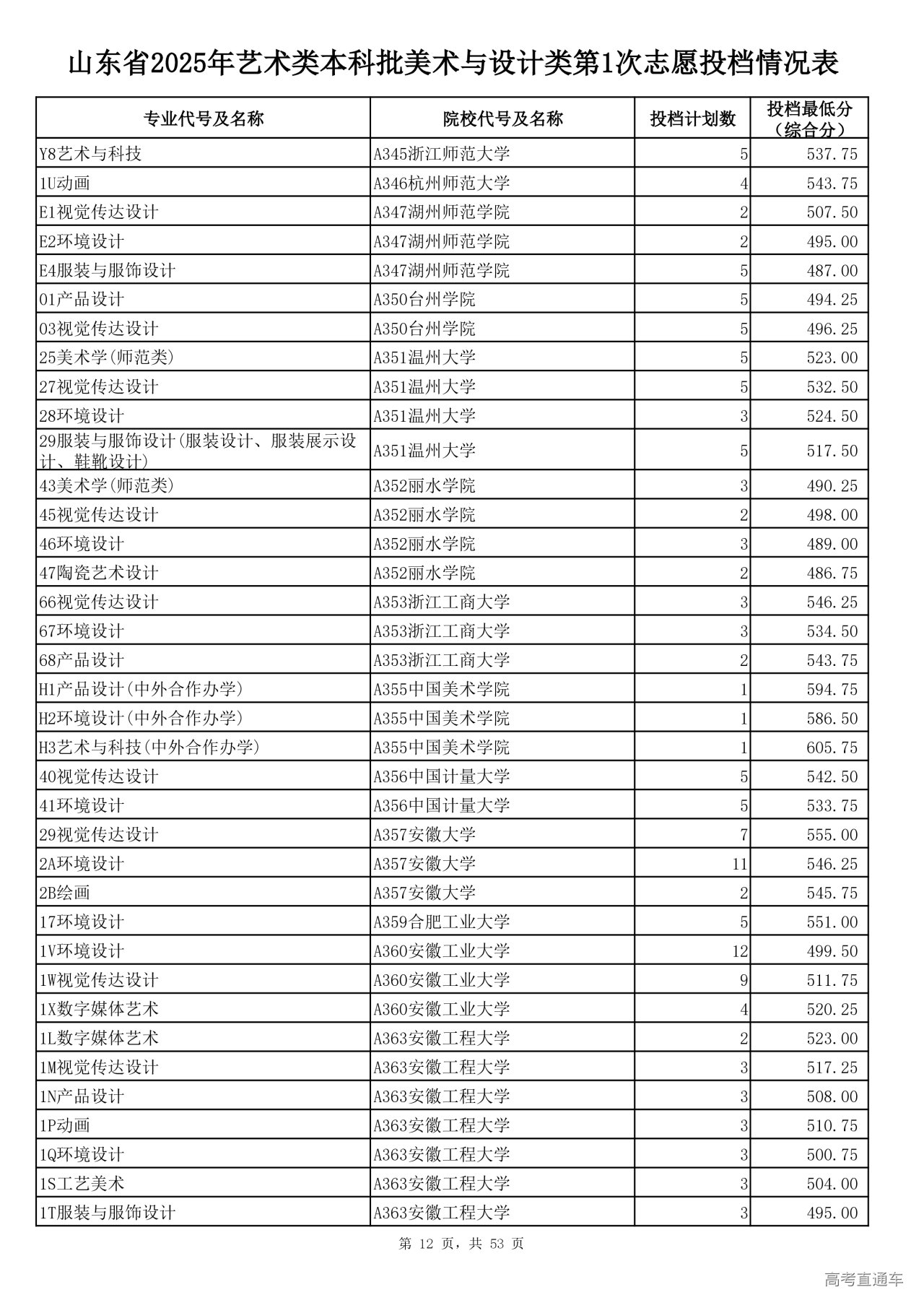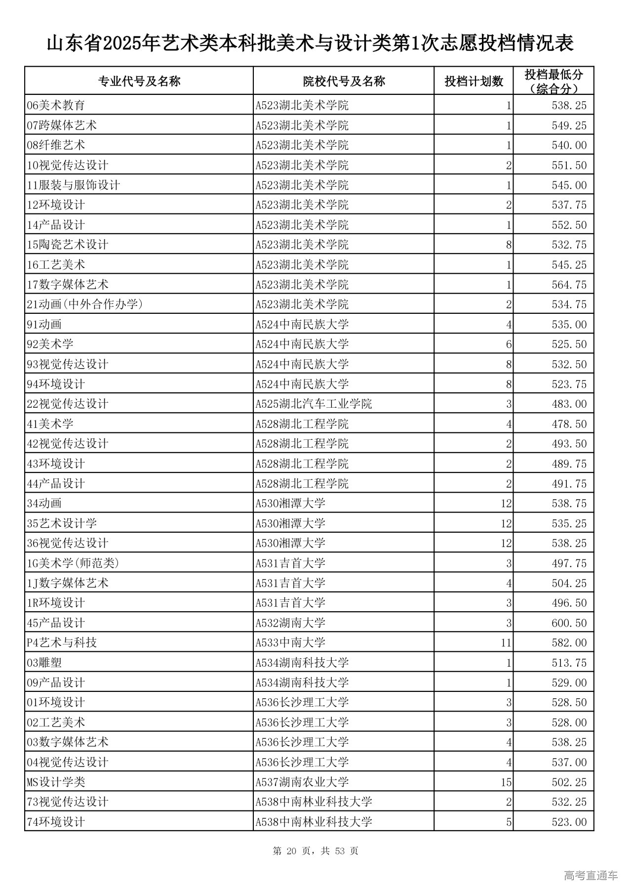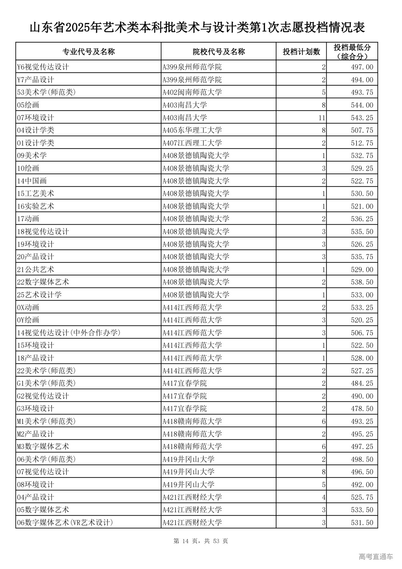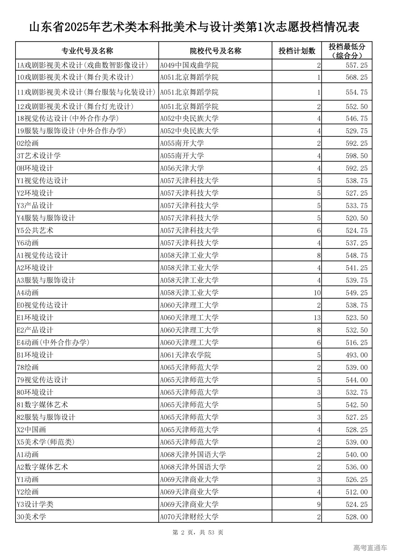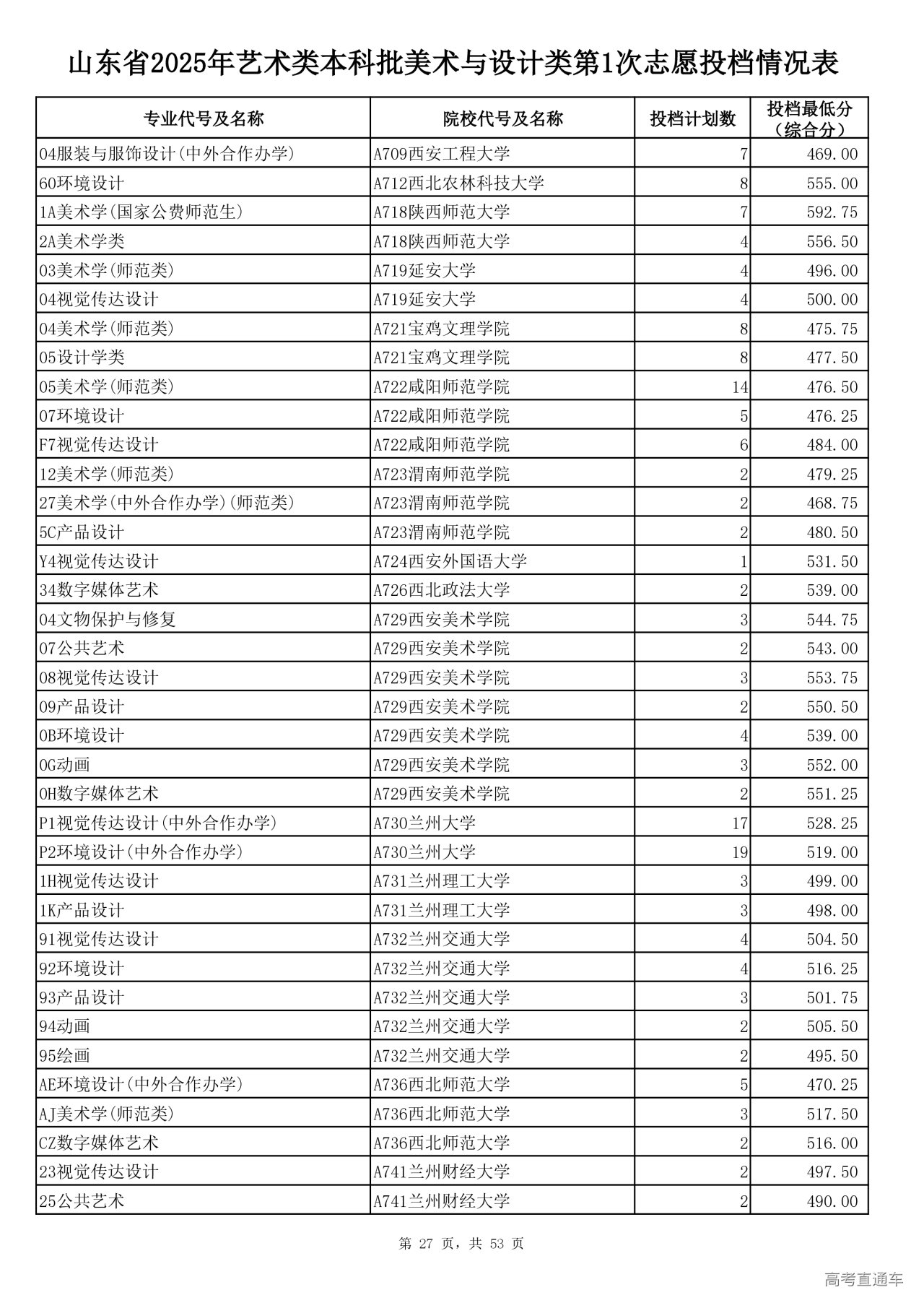 山东省2025年艺术类本科批美术与设计类第1次志愿投档情况表.xls