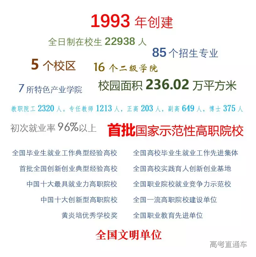 欢迎报考深圳职业技术学院 梦想航班号:11113 01 学校简介 国标代码:11113 学校地址:深圳市南山区 办学层次:专科(高职) 办学性质:公办普通高等学校 办学类型:全日制 深圳职业技术学院1993年创建,是国内最早独立举办高等职业技术教育的院校之一。 学校现有五个校区,校园总面积236.02万平方米。现有固定资产总值23亿元,其中教学仪器设备总值9.22亿元,教学用计算机12364台。图书馆藏有纸质图书261.2万册。 全校现有教职员工2320人,其中专任教师1213人,正高203人,副高649人,博士375人。 学校设有16个二级学院,招生专业85个。全校普通全日制在校生22938人,其中专科生22128人,应用型本科生616人,外国留学生194人。学校已累计培养11万余名全日制专科毕业生,毕业生初次就业率始终保持在96%以上。 学校办学成绩显著。2001年首家通过国家示范性高职院校实践教学基地优秀评估,2009年通过国家示范性高等职业院校建设项目验收,成为我国高等职业教育领域首批国家级示范校。近年来,学校先后荣获“全国文明单位”、“全国职业教育先进单位”、“全国一流高职院校建设单位”、“中国十大最具就业力高职院校”、“中国十大创新型高职院校”、“黄炎培优秀学校奖”等荣誉称号。 2016-2019年连续四年在中国高职高专院校竞争力排行榜中名列第一。 02 2019年招生概况 招生省份:15个 招生科类:文、理、美、音 招生专业:77个 招生计划:9000人(不含高职专业学院) 其中:普高计划4596人 (省外795人、省内3801人) 03 学校录取规则 (1)广东普通高中学业水平成绩要求: 在广东省,报考普通专科层次普通类专业,文科类考生必须参加普通高中学业水平物理、化学、生物学3门科目的考试,理科类考生必须参加普通高中学业水平思想政治、历史、地理3门科目的考试,各门考试均须获得等级成绩。且至少须有1门成绩达到C级及以上等级。 在广东省,报考艺术类(音乐类、美术类)考生,参加高考文科类文化课考试的考生必须参加物理、化学、生物学3门科目普通高中学考,参加高考理科类文化课考试的考生必须参加思想政治、历史、地理3门科目的普通高中学考,且至少须有2门科目成绩达到D级及以上等级。 (2)文理类专业分档原则: 普通高考文科类及理科类专业分档时按“分数优先”原则,根据考生投档总分从高到低录取,先安排高分考生的第一专业志愿,若该志愿额满,再逐一查看该生的后续专业志愿。投档总分相同的,按考生排位顺序或排位分择优录取。投档总分排位相同时,优先录取已修习相关专业基础知识(模块)的考生。如没有排位或排位分的省份(自治区、直辖市)及科类,则依次按普通高考单科顺序及分数从高到低排序:文科类为语文、数学、外语、文科综合,理科类为数学、语文、外语、理科综合。 (3)艺术类专业分档原则: 普通高考美术类及音乐类专业录取的基本原则:高考文化成绩及术科统考成绩分别达到生源省份(自治区、直辖市)控制分数线的基础上,按照该省份(自治区、直辖市)招办的投档原则投档后,学校根据高考文化成绩、术科统考成绩按比例合成综合分,考生总分=(文化课成绩×40%)+(术科统考成绩×2.5×60%),学校专业分档按“分数优先”原则,根据考生综合分从高到低录取,先安排高分考生的第一专业志愿,若该志愿额满,再逐一查看该生的后续专业志愿。综合分相同时,按考生排位顺序或排位分择优录取。无排位顺序或排位分的省份(自治区、直辖市),则依照术科统考成绩从高到低排序,术科统考成绩仍相同时,按照普通高考语文、英语、文科综合/理科综合、文科数学/理科数学科目成绩依次排序。 (4)中外合作办学专业: 本校软件技术(中美合作)、金融管理(中澳合作)、国际商务(中澳合作)、物流管理(中美合作)中外合作办学专业只招收填报本专业志愿的考生。 (5)专业调剂: 考生所填报的所有专业志愿均未被录取时,若服从专业调剂,调剂到计划有空额且符合相关专业要求的专业录取,按考生投档总分从高到低作调剂录取;考生不服从调剂的,或服从调剂但是不符合计划有空额专业相关要求的,作退档处理。 (6)语种要求: 本校公共外语教学为英语,非英语语种考生需慎重报考。 (7)加分或照顾分: 有关加分或照顾录取政策,在各省份执行各省招生办公布的加分项目及分值。加分分值适用于投档及专业分档。符合国家和省招生办公布的优录条件考生,学校在同等条件下优先录取。对考生学业水平成绩的要求,按各省有关规定执行。 (8)体检要求: 部分专业对考生色觉、身高等有要求。专业对体检有具体要求的,详细请看各省考试院公布的专业目录。 04 学费标准 05 志愿填报技巧