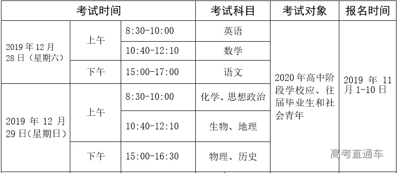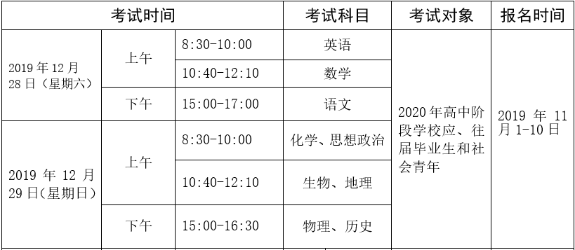2020年学考语数英(春季高考)定于2019年12月28日进行。