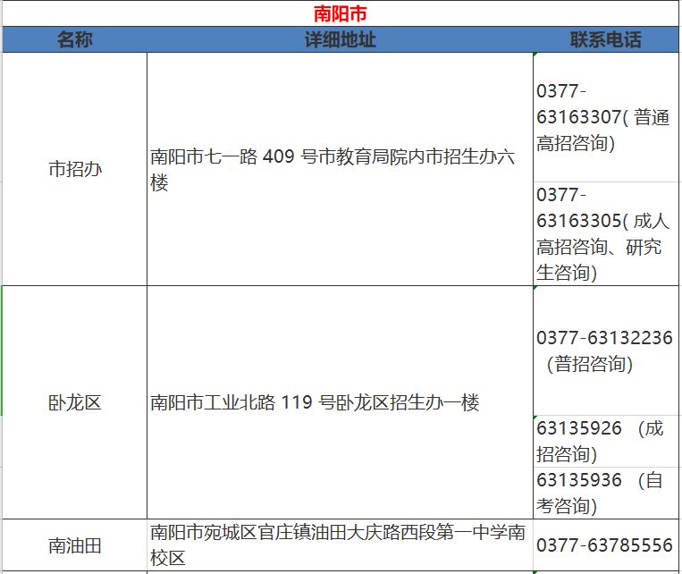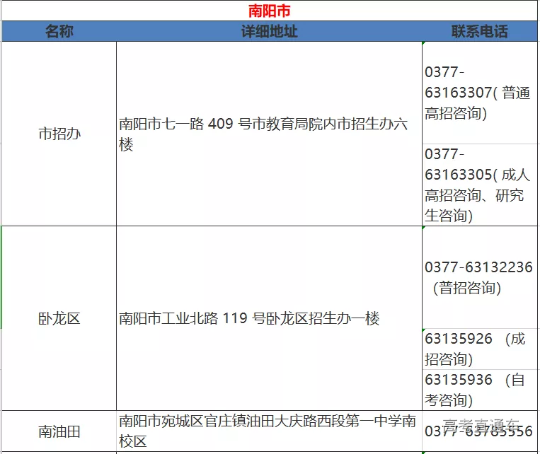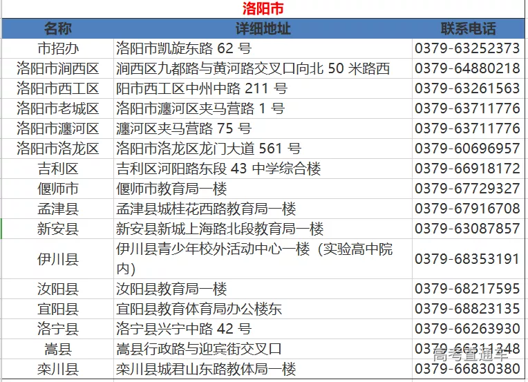资格审查与材料 报名手续:考生须提供本人身份证、户口簿。 报名手续:考生须提供本人身份证、户口簿、学历证明(普通高中、中等职业学校毕业证书或同等学力证明)。 3.中等职业学校(含普通中专、职业中专、职业高中、技工学校)应届毕业生,须在学籍所在学校或学籍所在地招办直属报名点报名。 报名手续:考生须提供本人身份证、户口簿、学籍证明。 4.户籍在我省,但在外省就读、学籍在外省的应届毕业生,如在我省报考,须在户籍所在的县(市、区)招办直属报名点报名。 报名手续:考生须提供本人身份证、户口簿、就读学校所在地学籍管理部门出具的相关证明、档案资料等。 5.符合《河南省关于做好进城务工人员随迁子女接受义务教育后在当地参加升学考试工作实施意见的通知》(豫政办〔2012〕180号)规定条件,在我省就业的外省户籍人员的子女,父母一方须有合法职业和稳定住所,普通高中应届毕业生参加高考须具有当地学校正式学籍,随学籍所在的学校参加报名。考生不得在“流入”和“流出”两地同时参加高考报名。 报名手续:考生须提供本人身份证、户口簿,以及父母双方身份证、户口簿、父母一方在报名所在地的居住证和就业证明。此类考生还须按要求在网上进行“资格条件申报”。 6.在我省就读的台湾省籍考生,随学籍所在学校报名。 报名手续:考生须提供河南省人民政府台湾事务办公室出具的证明、考生本人的台湾居民往来大陆通行证和相应的户口簿。 7.在河南定居并具备报名资格的外国侨民,在定居地县(市、区)招办直属报名点报名。 报名手续:考生须提供河南省公安机关填发的《外国人永久居留证》或《外侨居留证》。 8.经教育部批准的,取得中国科学技术大学、西安交通大学少年班、以及清华大学、北京大学数学英才班等招生资格的非毕业年级考生,凭高校核发的准考手续,在中学学籍地随本校应届生报名,只能报考给予资格的高校。 报名手续:考生须提供招生院校出具的准考手续、本人身份证、户口簿。 五类人员不能报名 1.具有高等学历教育资格的高校在校生; 2.高级中等教育学校非应届毕业的在校生(经核准的少年班考生除外); 3.在高级中等教育阶段非应届毕业年份以弄虚作假手段报名并违规参加普通高校招生考试(包括全国统考、省级统考和高校单独组织的招生考试,以下简称“高校招生考试”)的应届毕业生; 4.因违反国家教育考试规定,被给予暂停参加高校招生考试处理且在停考期内的人员; 5.因触犯刑法已被有关部门采取强制措施或正在服刑者。 报名类别 1.普通高招科类选择文科、理科,然后还需选择是报普通类、体育类、艺术类。 2.体育单招、高招单招、高水平运动员不是单独的报名类别,具体报名办法请关注随后推送的文章。 3.中职类应届可选择对口升学类。 4.高职高专应届或符合条件的高职退伍士兵可选择专升本。 5.根据不同科类、不同类别报名点编制不同的报名序号和班级代码。 6.根据所选择的类别交纳相应的报名费。 获取报名账号 由招办直属报名点或中学对资料审核合格的考生提供报名序号和注册密码,获取报名序号和注册密码后才能进行网上报名。 网上报名 我省普通高校招生报名实行网上报名与现场确认相结合的办法,包括网上信息采集、现场信息采集与确认、符合政策的资格条件申报、签订考生诚信承诺书、资格审核等报名环节。考生须按要求完成并通过审核,高考报名才能有效。 按规定时间登录河南省招生办公室网站(www.heao.gov.cn),进入“河南省普通高校招生考生服务平台”,按要求如实填写信息。 2020年网上报名和申请照顾对象同时进行,符合照顾对象申请条件的考生还需在此时间段内申请照顾条件。 现场确认 按照学校或招办直属报名点的安排,网上报名成功后还需现场确认。 现场确认时需读取身份证信息、扫描身份证、采集考生指纹、现场照相。 特别提示:网上报名成功后才能现场确认。 签字确认 现场确认后,到招办直属报名点或应届中学领取打印的考生报名登记表(正式表),信息核对无误后,考生本人(不能代签)、父母一方、班主任、报名点负责人需在报名登记表上签字。 到此,报名完成。 考生如在报名过程中遇到问题,请及时联系所在县(区)招生考试服务大厅进行咨询。 河南省招生考试综合服务大厅联系方式