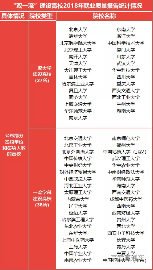 2017年9月,教育部公布世界一流大学和一流学科(简称“双一流”)建设高校及建设学科名单。其中世界一流大学建设高校39所,世界一流学科建设高校98所,合计137所。中国地质大学、中国矿业大学、中国石油大学3所大学“一个校名、两地办学”,因此,本次统计实际覆盖140所高校的毕业生就业质量报告。