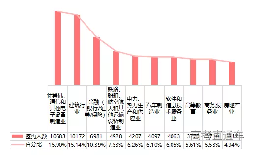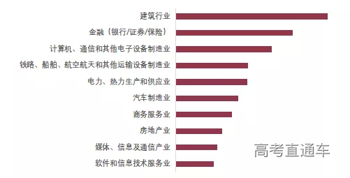 从用人方所在行业来看,“双一流”建设高校毕业生选择人数排名前三的是:计算机、通信和其他电子设备制造业,建筑行业,金融(银行/证券/保险)。