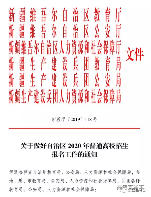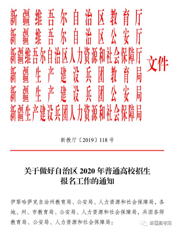 自治区2020年普通高校招生工作坚持以习近平新时代中国特色社会主义思想为指引,深入贯彻党的十九大和十九届二中、三中全会精神,贯彻落实习近平总书记关于新疆工作的重要讲话和重要指示精神,贯彻落实新时代党的治疆方略,特别是社会稳定和长治久安总目标,贯彻落实全国教育大会精神,全面贯彻党的教育方针,落实立德树人根本任务,选拔和培养德智体美劳全面发展的社会主义建设者和接班人。深入落实《国务院关于深化考试招生制度改革的实施意见》(国发〔2014〕35号),按照稳中求进的工作总基调,进一步推动改革创新,加强规范管理,提升工作精细化水平,确保普通高校考试招生各项工作公平公正、规范有序。现就做好自治区2020年普通高校招生报名工作通知如下: