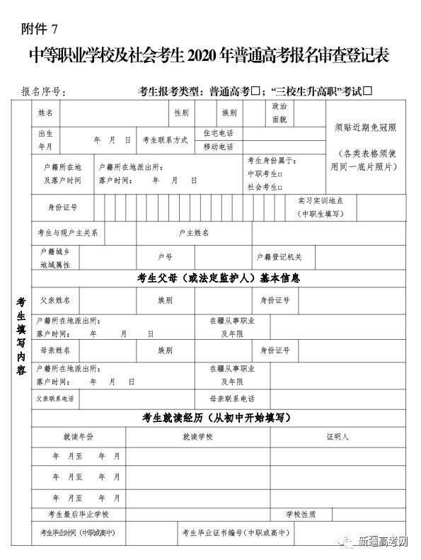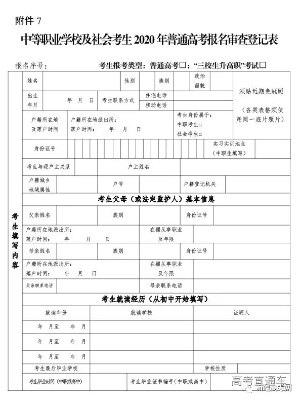 参加自治区2020年普通高考、提前单独招生及“三校生升高职”单独招生的考生,包括普通文理科类、艺术类和体育类考生、高水平运动队、高水平艺术团招生、重点大学少年班招生、保送生、高等职业院校提前单独招生、运动训练、武术与民族传统体育专业提前单独招生、职教师资提前单独招生、盲聋哑残疾生提前单独招生、“三校生升高职”单独招生(含直升专)等,均须参加我区统一组织的高考网上报名及资格审查。