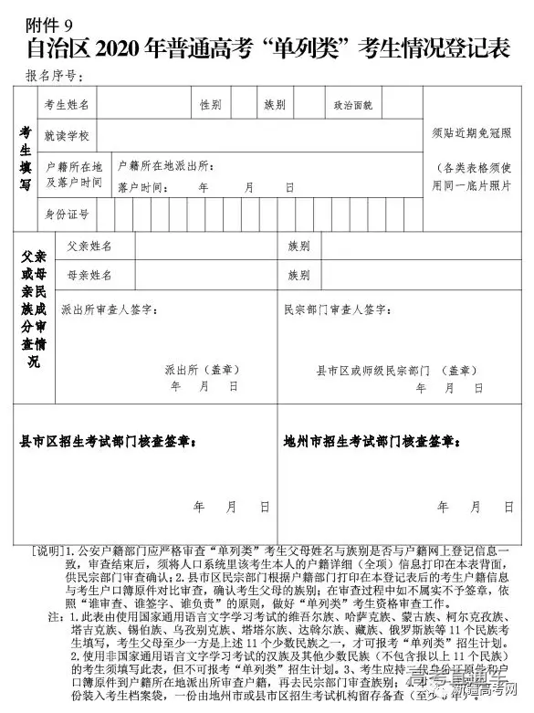 (五)各级民宗部门具体负责辖区范围内考生及父母族别的审查工作(考生及父母族别确认权在各地普通高考报名资格审查工作领导小组)。